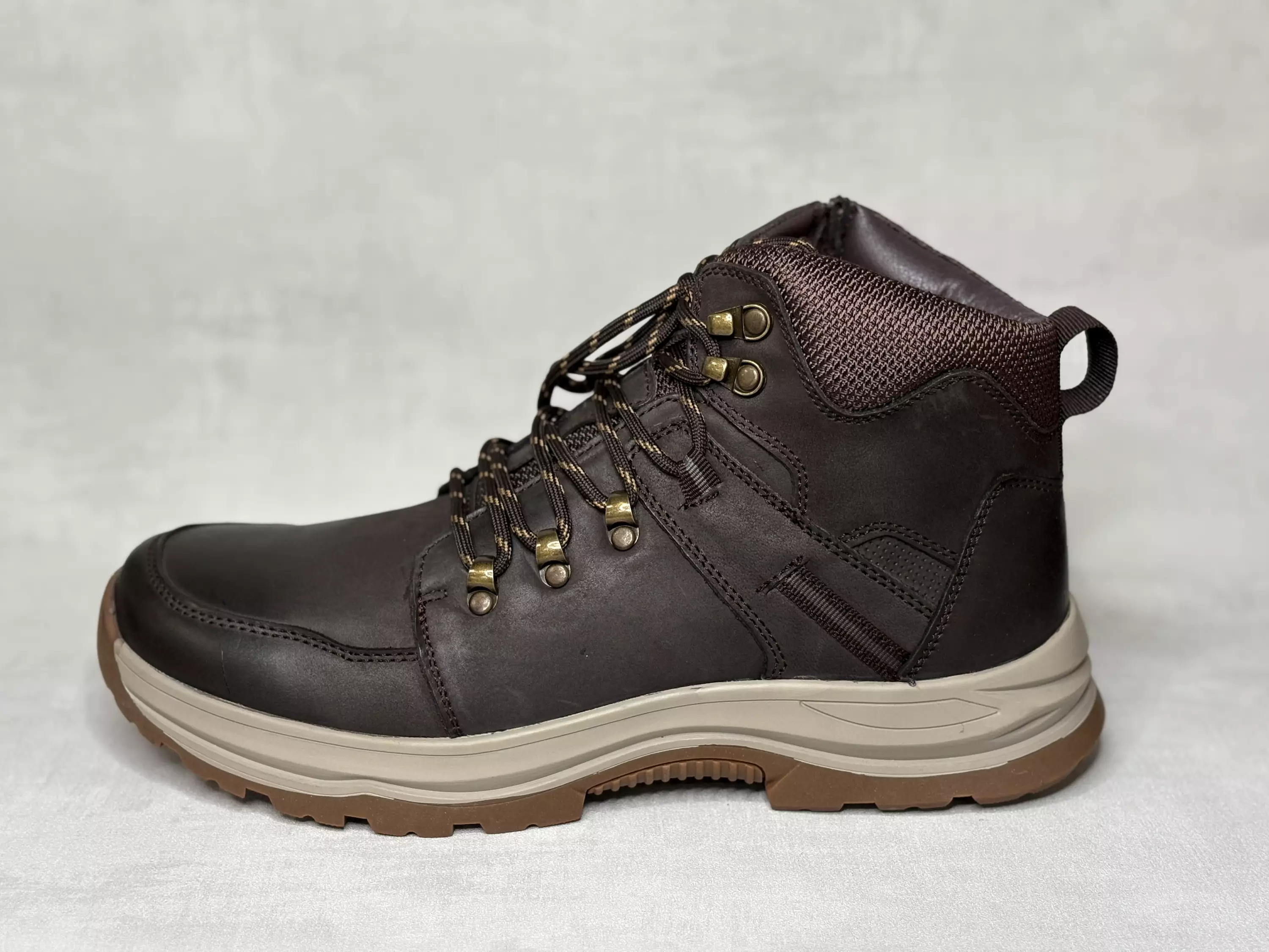 Ruskeat Askel talvikengät. Pörrövuoriset nahkapintaiset talvikengät. Varren yläosassa tekstiilinen osio ja kannassa vetolenkki. Nauhojen avulla kengät on helppo säätää omaan jalkaan sopiviksi ja sisäsyrjälle sijoitettu vetoketju vauhdittaa pukemista.