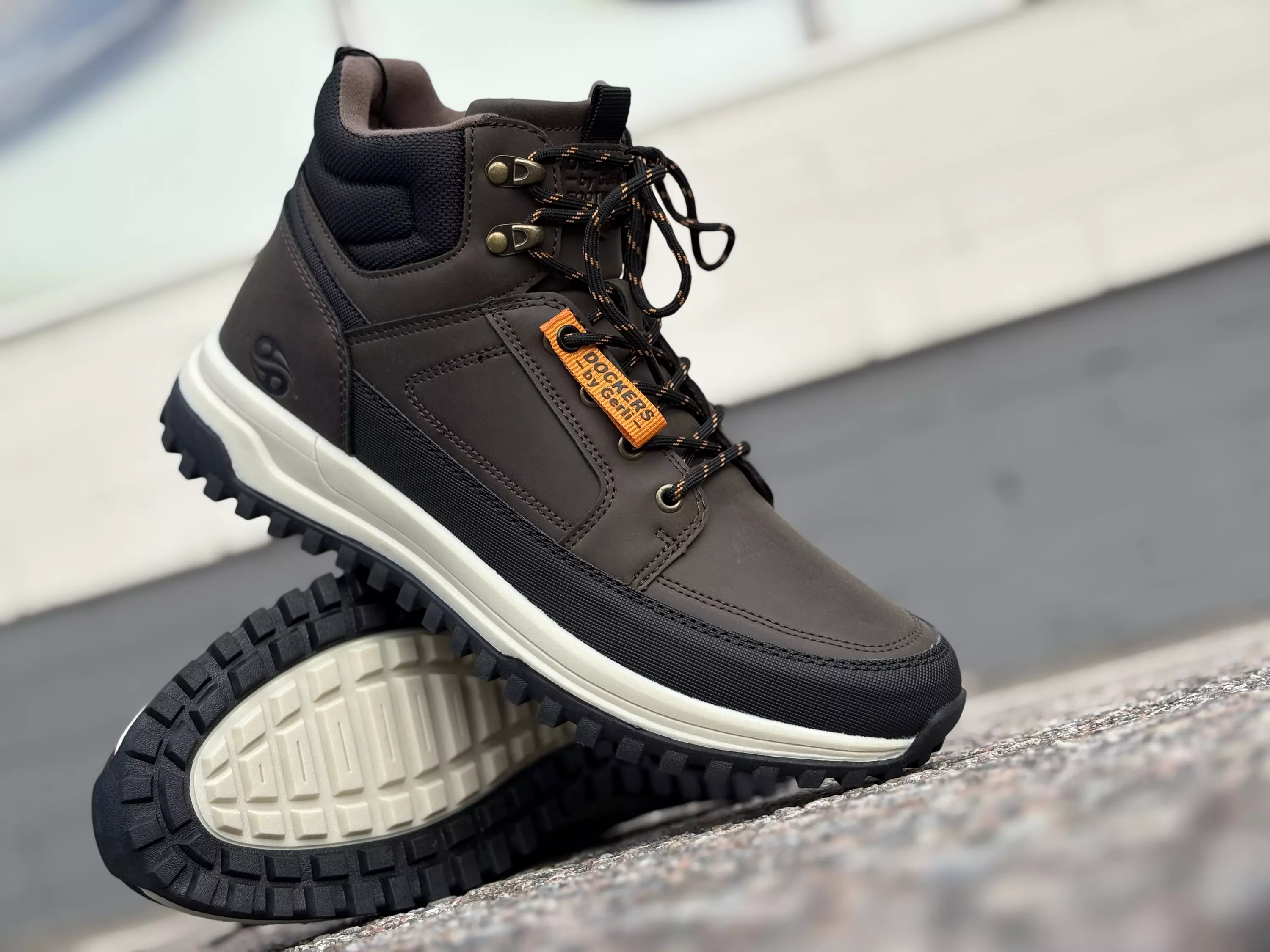 Tummanruskeat Dockers by Gerli nilkkurit. Mustalla aksenttivärillä koristetut nilkkurit. Pienen väriyksityiskohdan tuovat oranssilla koristetut mustat kengännauhat. Sisäsyrjällä pukemista vauhdittava vetoketju. Ilmettä tuo myös vaalea ulkopohjan sivu. Normaalia (G) lestimitoitusta. Ohut tekstiilivuori. Vaihdettavat pohjalliset, joten tarvittaessa sujautat kenkiin omia tarpeitasi parhaiten vastaavat pohjalliset. Kannan korkeus noin 4cm ja pohjan korkeus päkiän alta noin 2cm.