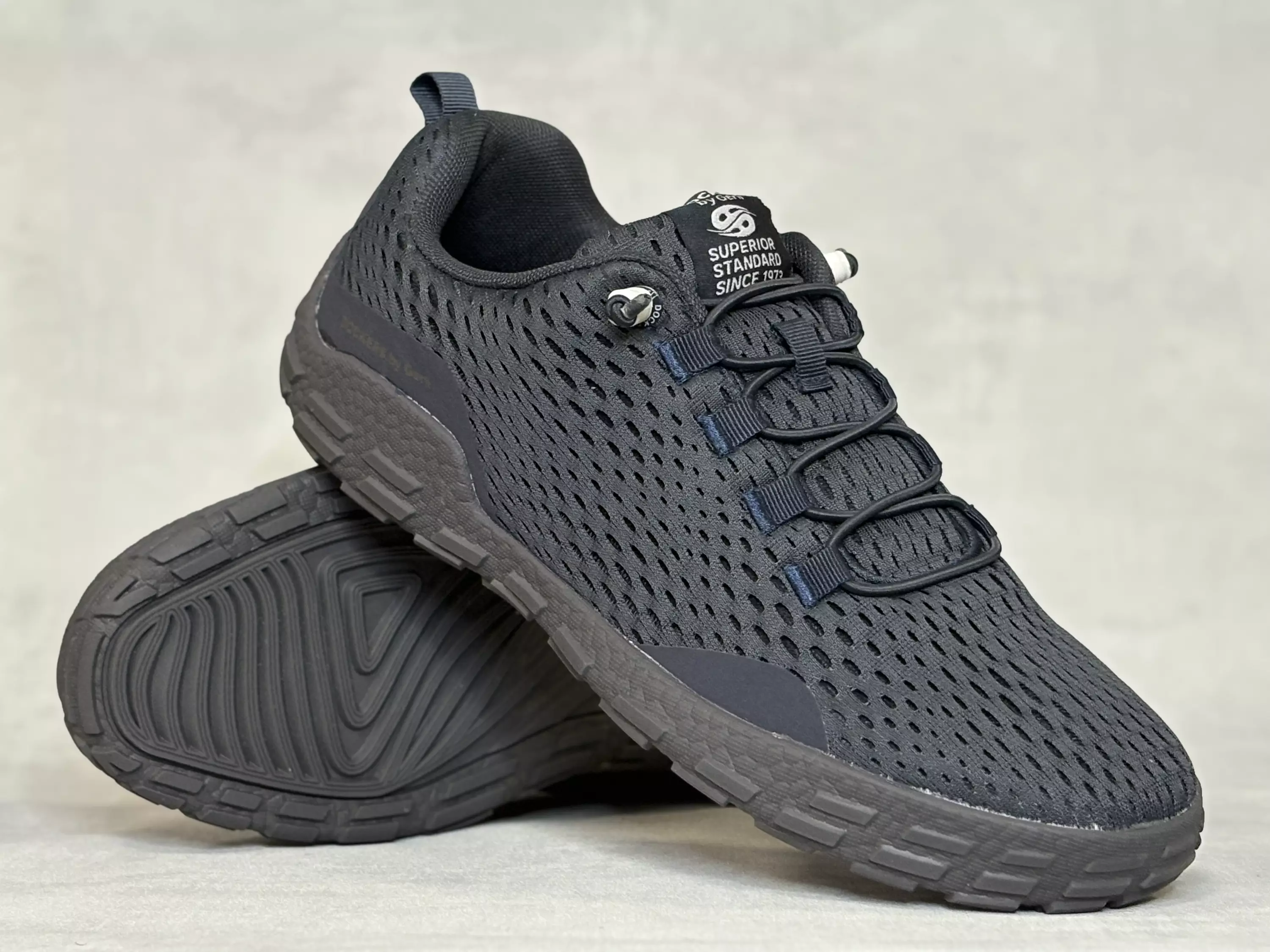 Tummansiniset Dockers kävelykengät. Tekstiilipintaiset tennarit on varustettu joustavilla venykenauhoilla (vaihdettavat, mutta säätövaraa ei juuri ole). Vaihdettavat pohjalliset, joiden tilalle sujautat tarvittaessa omia tarpeitasi parhaiten vastaavat pohjalliset. Kannan korkeus noin 2,5cm ja pohjan korkeus päkiän alta noin 2cm.