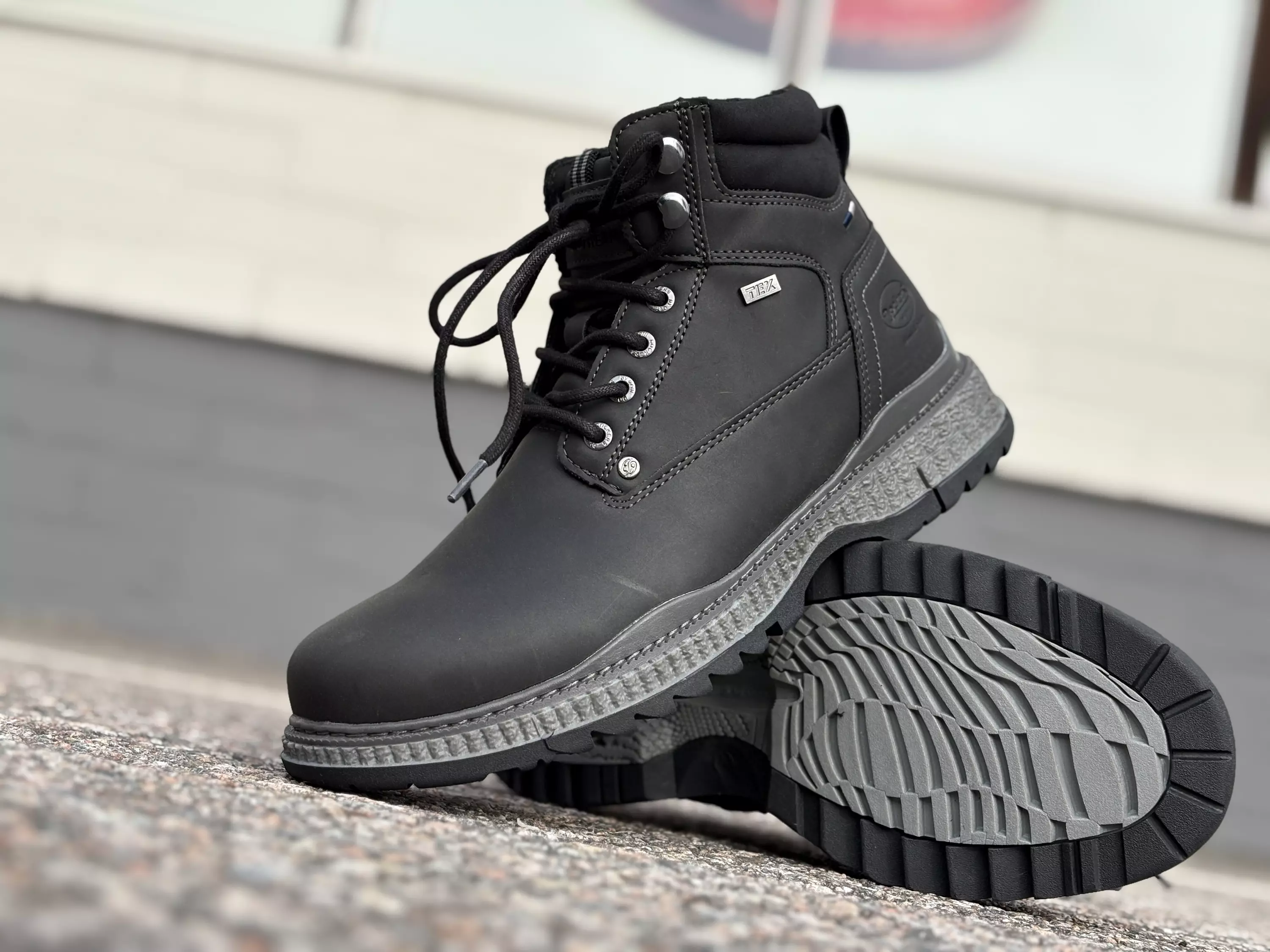 Mustat Dockers by Gerli nilkkurit. Tex kalvo pitää sateen ja tuulentuiskeen kengän ulkopuolella. Nauhojen avulla säädät kengät vaivattomasti omaan jalkaan sopivan kireälle ja veoketju vauhdittaa pukemista. Vetoketjun alla ja iltin sivuissa "vesilukko", joka estää vettä päätymästä kengän sisään, jos astut lätäkköön. Vaihdettavat pohjalliset, joten tarvittaessa sujautat kenkiin omia tarpeitasi parhaiten vastaavat pohjalliset. Kannan korkeus noin 3,5cm ja pohjan korkeus päkiän alta noin 2cm.