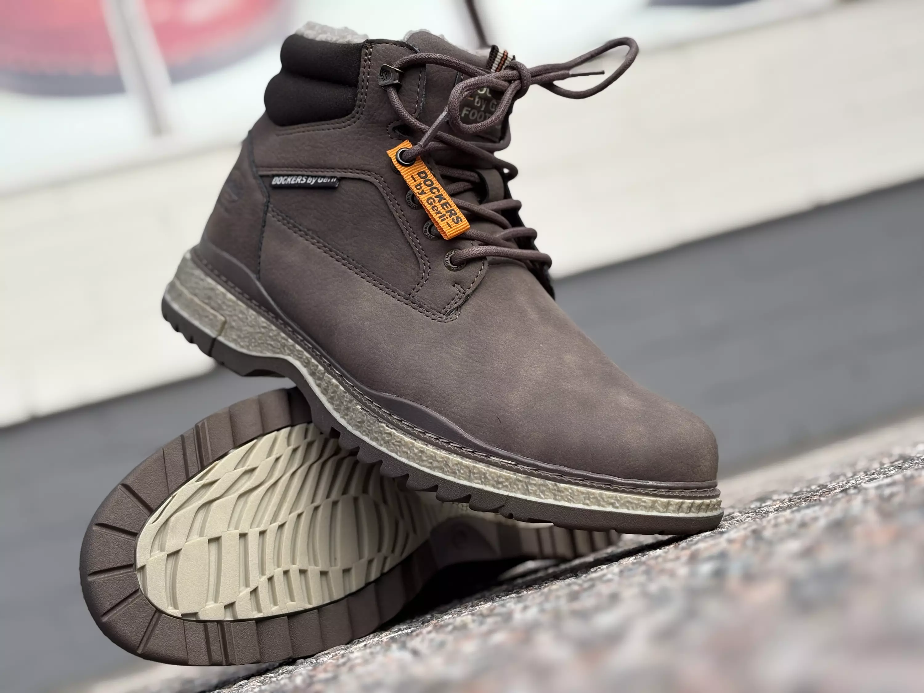 Ruskeat Dockers by Gerli talvinilkkurit. Pörröisellä tekstiilivuorilla varustetut nilkkurit. Sisäsyrjällä pukemista vauhdittava vetoketju ja nauhojen sekä varren hakasten avulla säädät kengät omaan jalkaan sopivalle kireydelle. Sisäpohjan pinta on samaa pörröistä materiaalia, kuin muukin vuori. Normaali lestimitoitus. Kannan korkeus noin 3,5cm ja pohjan korkeus päkiän alta noin 2cm.