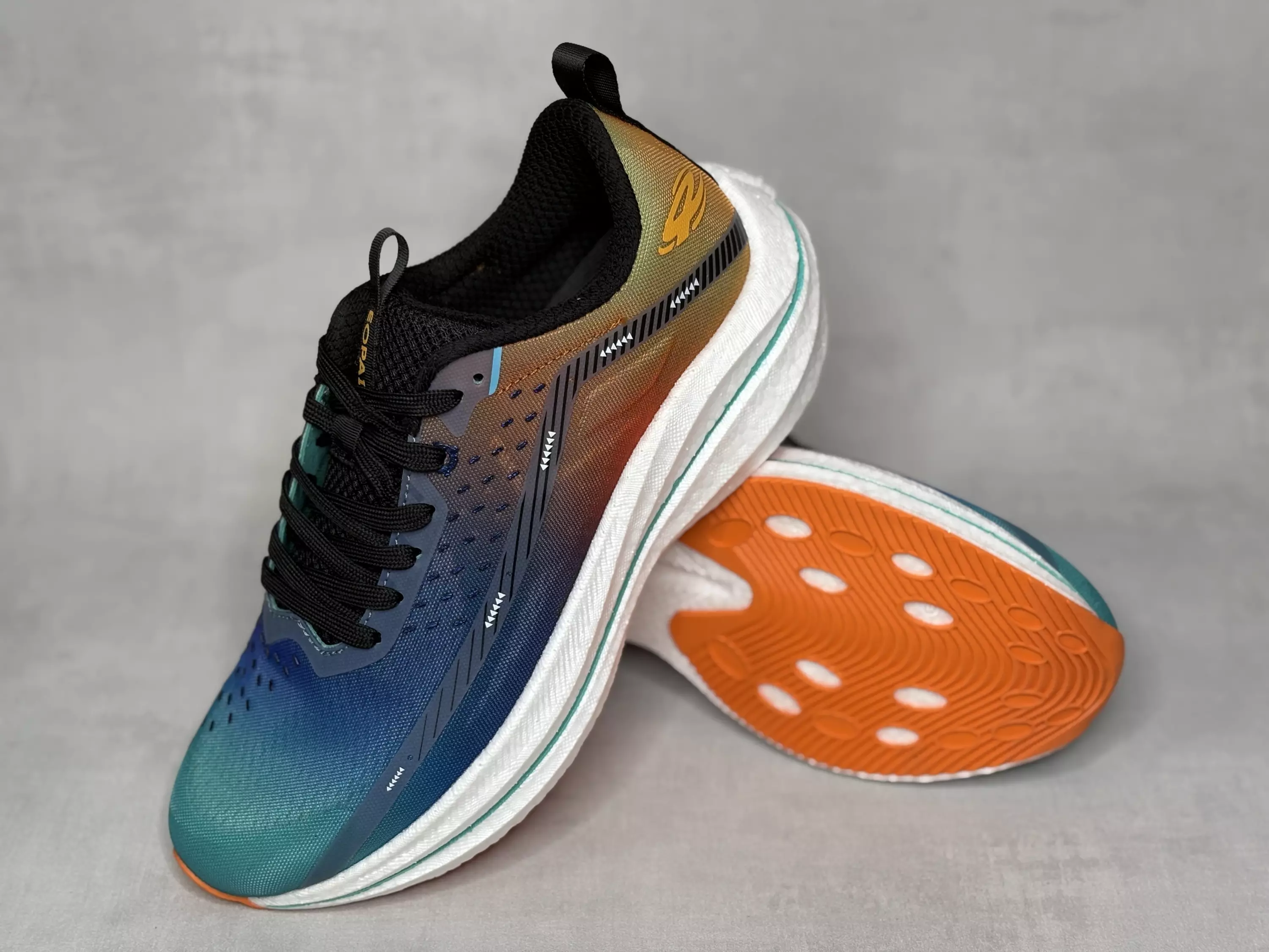 Moniväriset Eopaia Unisex lenkkarit. Kärjestä turkoosit, väri vaihtuu liukuvärinä sinisen ja oranssin kautta kannan keltaiseksi. Kevyet lenkkarit, joissa joustava pehmeä pohja. Nauhalliset kengät on helppo säätää omaan jalkaan sopiviksi. Kannassa ja iltissä tekstiilinen vetolenkki. Vaihdettavat pohjalliset, joten tarvittaessa vaihdat kenkiin omia tarpeitasi parhaiten vastaavat pohjalliset.