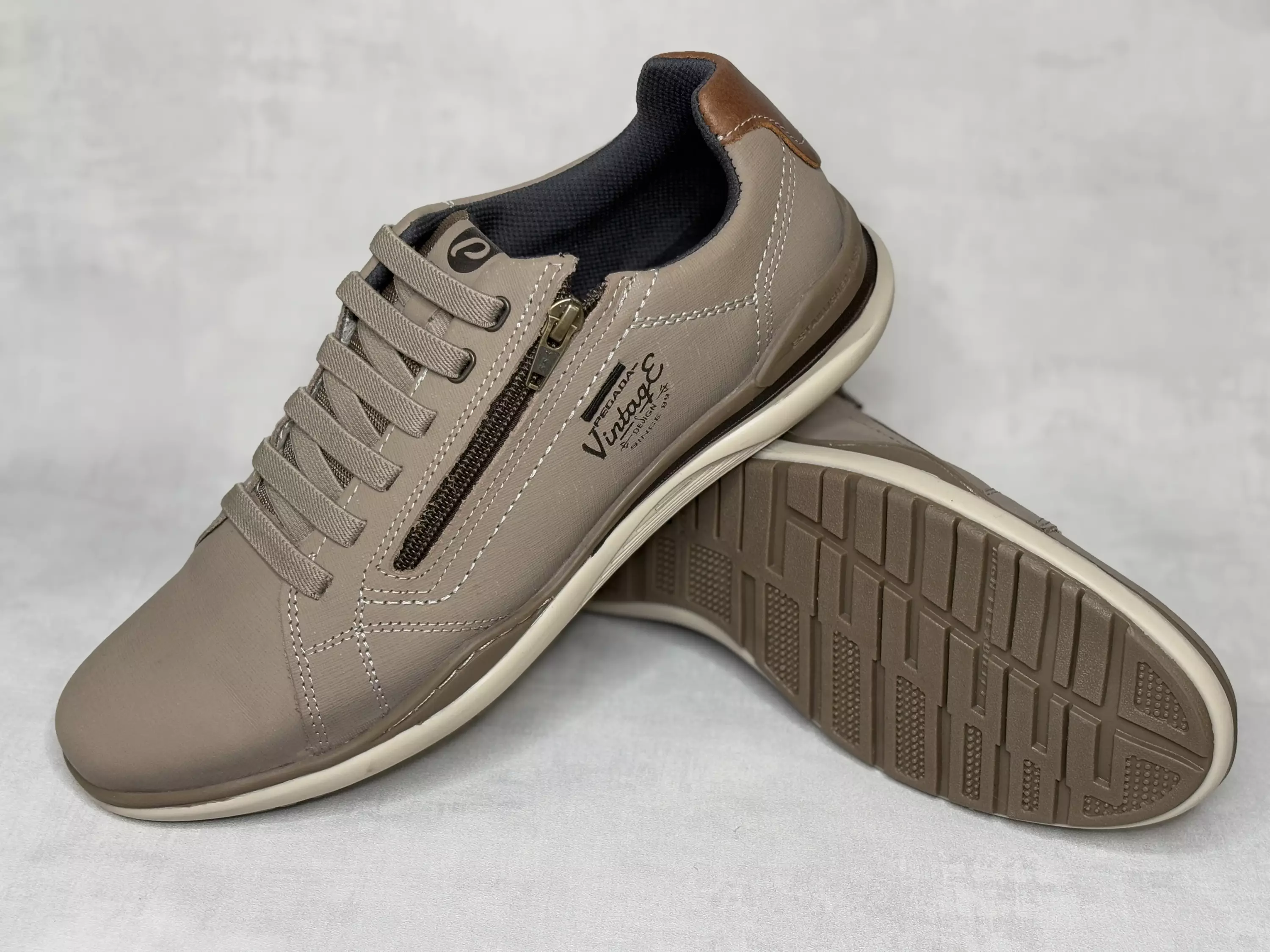 Beiget Pegada kävelykengät. Venykenauhoilla ja vetoketjulla varustetut matalavartiset kävelykengät toimivat mainiosti vaikkapa farkkujen kanssa! Vetoketju helpottaa pukemista ja toimii myös kenkien yksityiskohtana. Ulkosyrjällä Pegada - Vintage Design since 89-teksti. Konjakinruskea kantakappale. Kannan korkeus noin 3,5cm ja pohjan korkeus päkiän alta noin 1,5cm.
