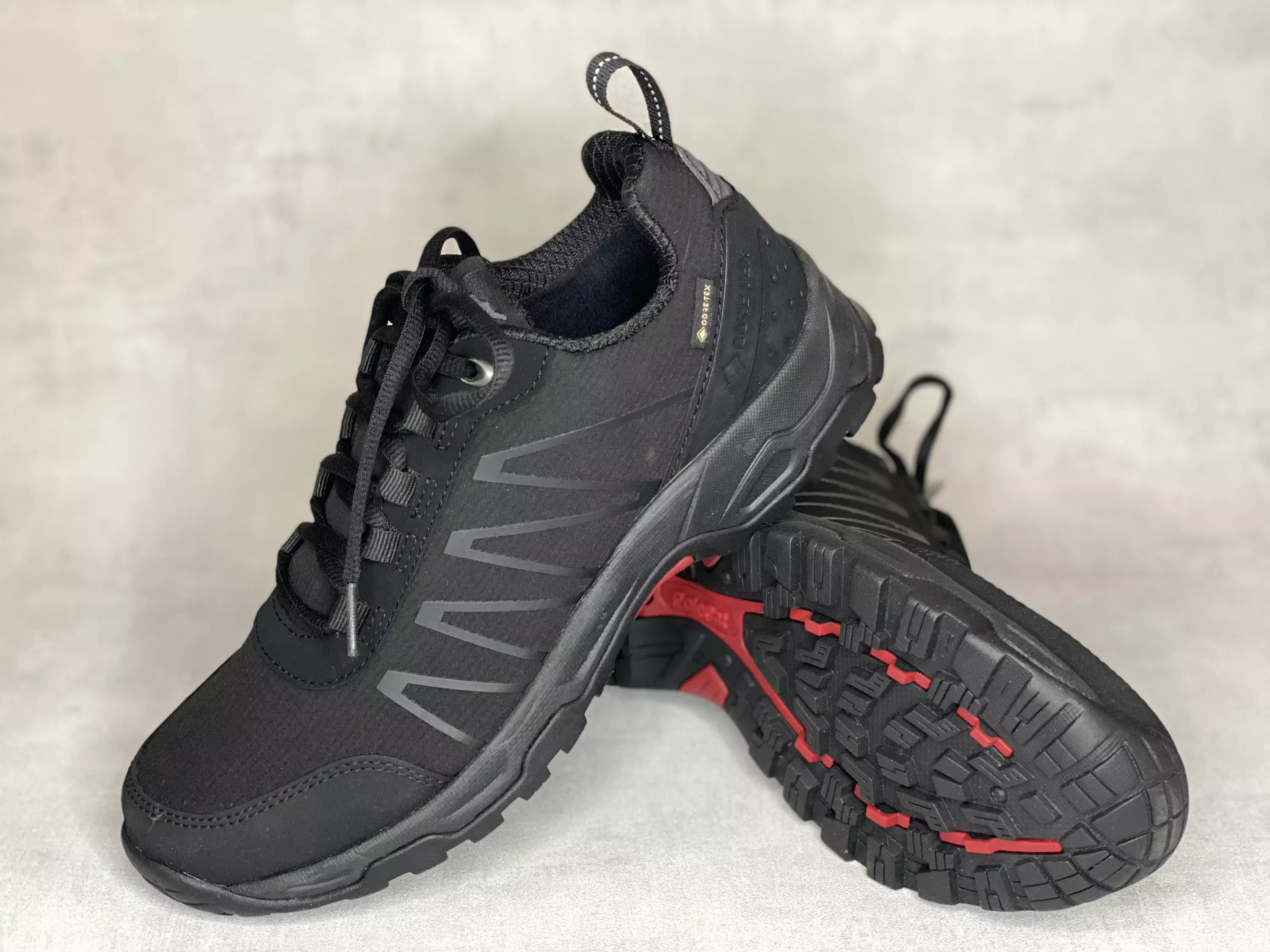 Mustat Polecat Sicco Rock GTX Unisex lenkkarit. Vettä pitävät nauhalliset Gore-Tex lenkkarit. Kannassa kapealla heijastimella varustettu vetolenkki. Kevyesti muotoillut vaihdettavat pohjalliset, joten tarvittaessa vaihdat lenkkareihin omia tarpeitasi parhaiten vastaavat pohjalliset. Reilusti kuvioitu pitävä ulkopohja.