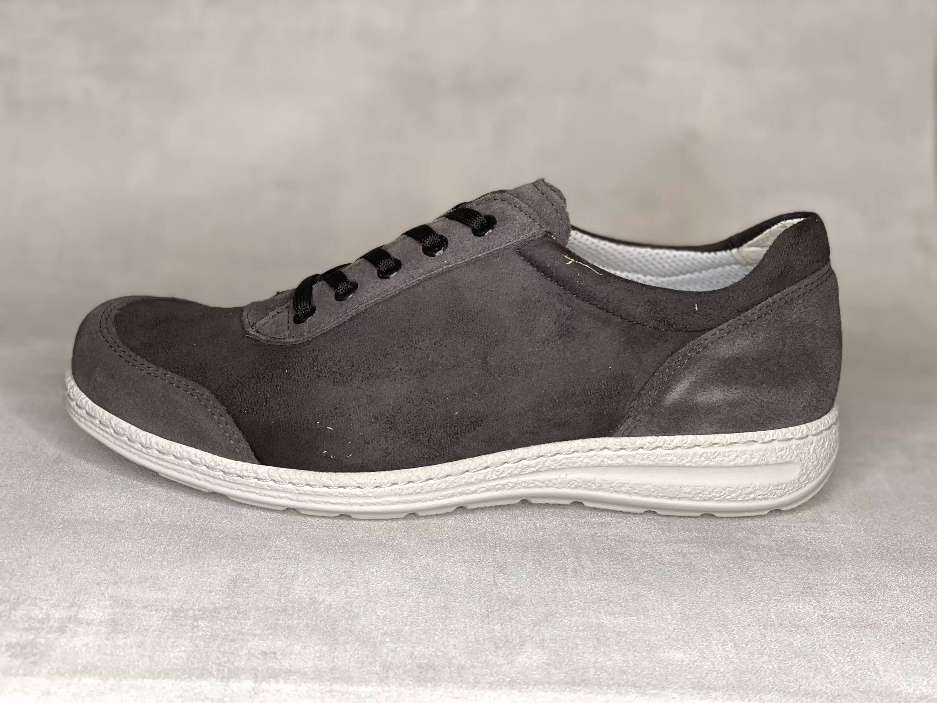 Tummanharmaat miesten Pomar +plus KUU kävelykengät. Nauhalliset kävelykengät, joissa muuta pintaa hieman vaaleamman harmaa kärki ja kantakappale, sekä nauhoituksen ympäristö. KUU kävelykengät ovat laajalestiset, kevyet ja mukavat. Joustava stretch-materiaali tuo kenkiin sukkamaista joustoa. Vaihdettavat pohjalliset, joten tarpeen vaatiessa vaihdat kenkiin omioin jalkoihisi parhaiten istuvat pohjalliset. Tekstiilinen sisävuori on kevyesti pehmustettu.