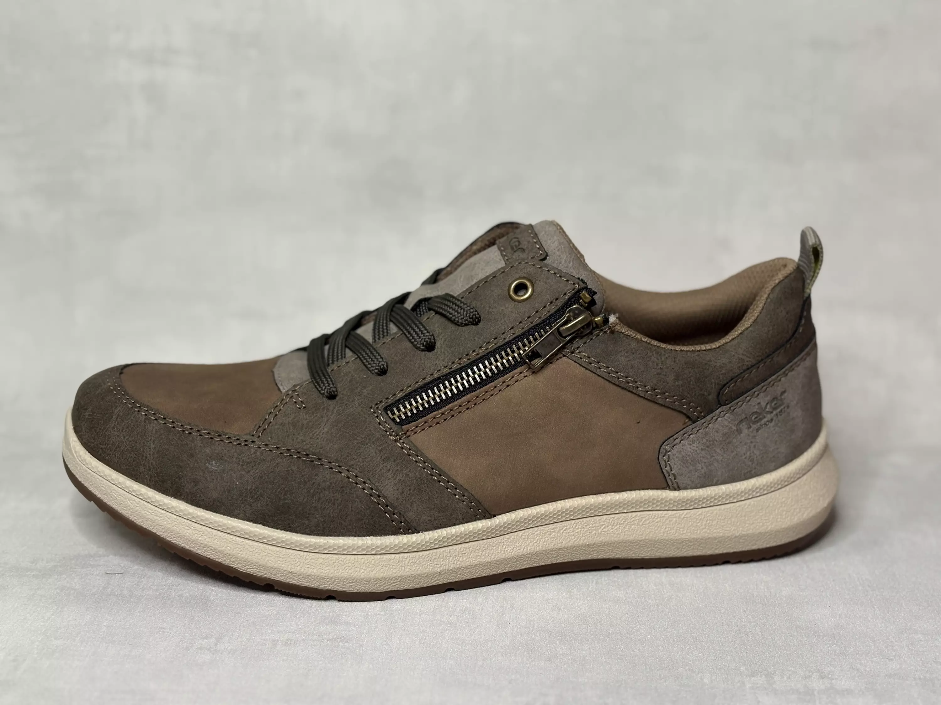 Vaaleanruskeat Rieker kävelykengät. Nauhalliset kengät on helppo säätää omaan jalkaan sopiviksi. Ulkosyrjälle sijoitettu vetoketju helpottaa pukemista, toimien myös kengän yksityiskohtana. Leveälestiset (Rieker Extra wide) kävelykengät on varustettu vaihdettavilla Rieker antistress-pohjallisilla. Vaihdettavat pohjalliset mahdollistavat omaan jalkaan parhaiten sopivien pohjallisten käyttämisen. Kannan korkeus noin 3cm ja pohjan korkeus päkiän alta noin 2cm.