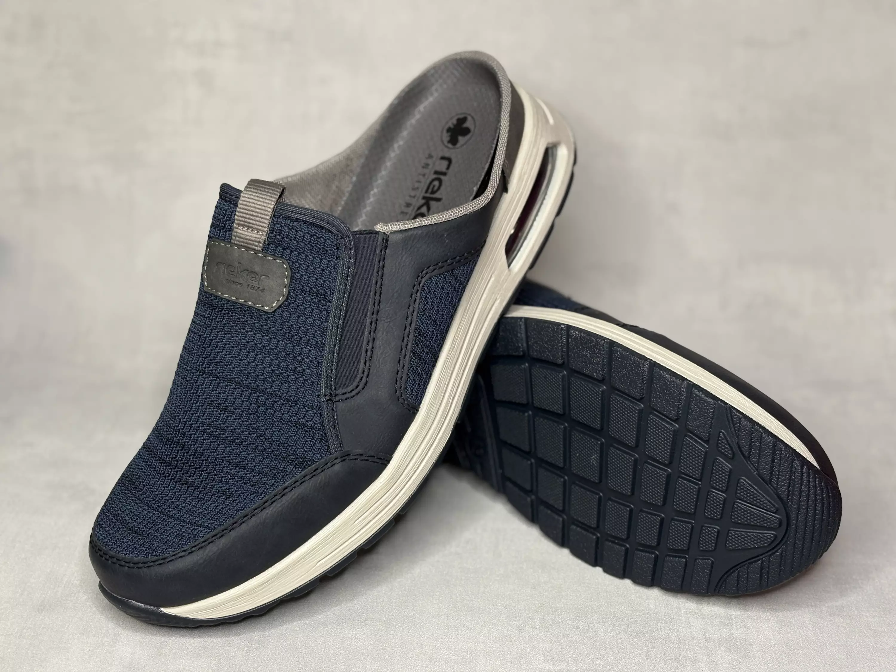 Siniset Rieker pistokkaat. Pistokkaat ovat vaivattomat pukea, loistva valinta helpoksi kesäkengäksi, toimistoon tai mökille. Kengän sisä- ja ulkosyrjällä on istuvuutta parantavat venykkeet. Riker anstistress-pohjalliset ovat vaihdettavat, joten tarvittaessa sujautat kenkiin omia tarpeitasi parhaiten vastaavat pohjalliset. Kannan korkeus noin 4cm ja pohjan korkeus päkiän alta noin 2cm.