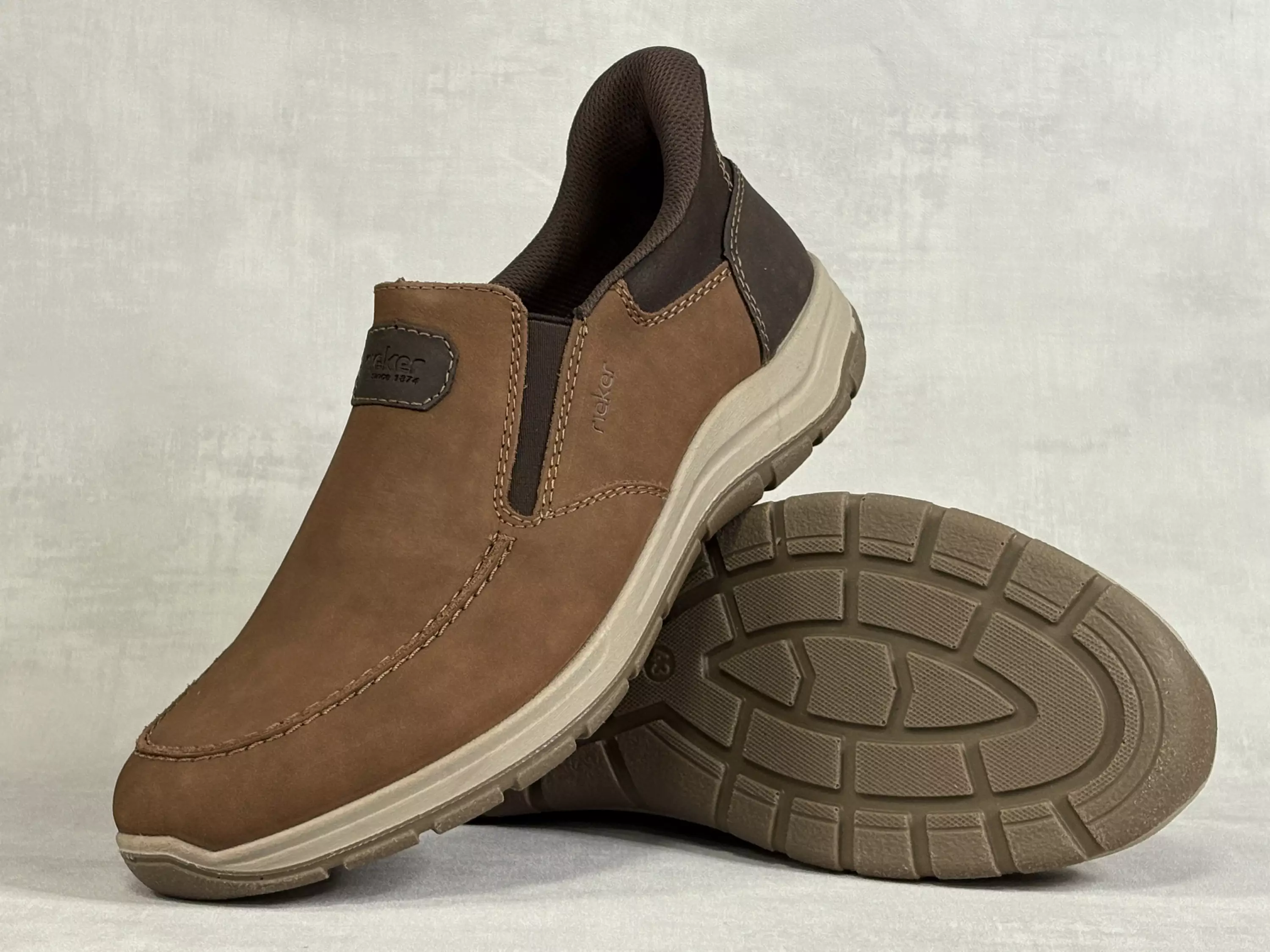 Ruskeat Rieker kävelykengät. Ready2Go kenkälusikkakannalla varustetut kävelykengät sujahtavat vaivattomasti jalkaan. Sisä-ja ulkosyrjällä istuvuutta parantavat ja pukemista helpottavat venykkeet. Kannassa ja venykkeissä tummanruskea aksenttiväri. H-lestiset kävelykengät, Riekerin merkintä Extra wide. Rieker antristress pohjalliset ovat vaihdettavat, joten tarvittaessa sujautat kenkiin omia tarpeitasi parhaiten vastaavat pohjalliset. Kannan korkeus noin 4cm ja pohjan korkeus päkiän alta noin 2,5cm.
