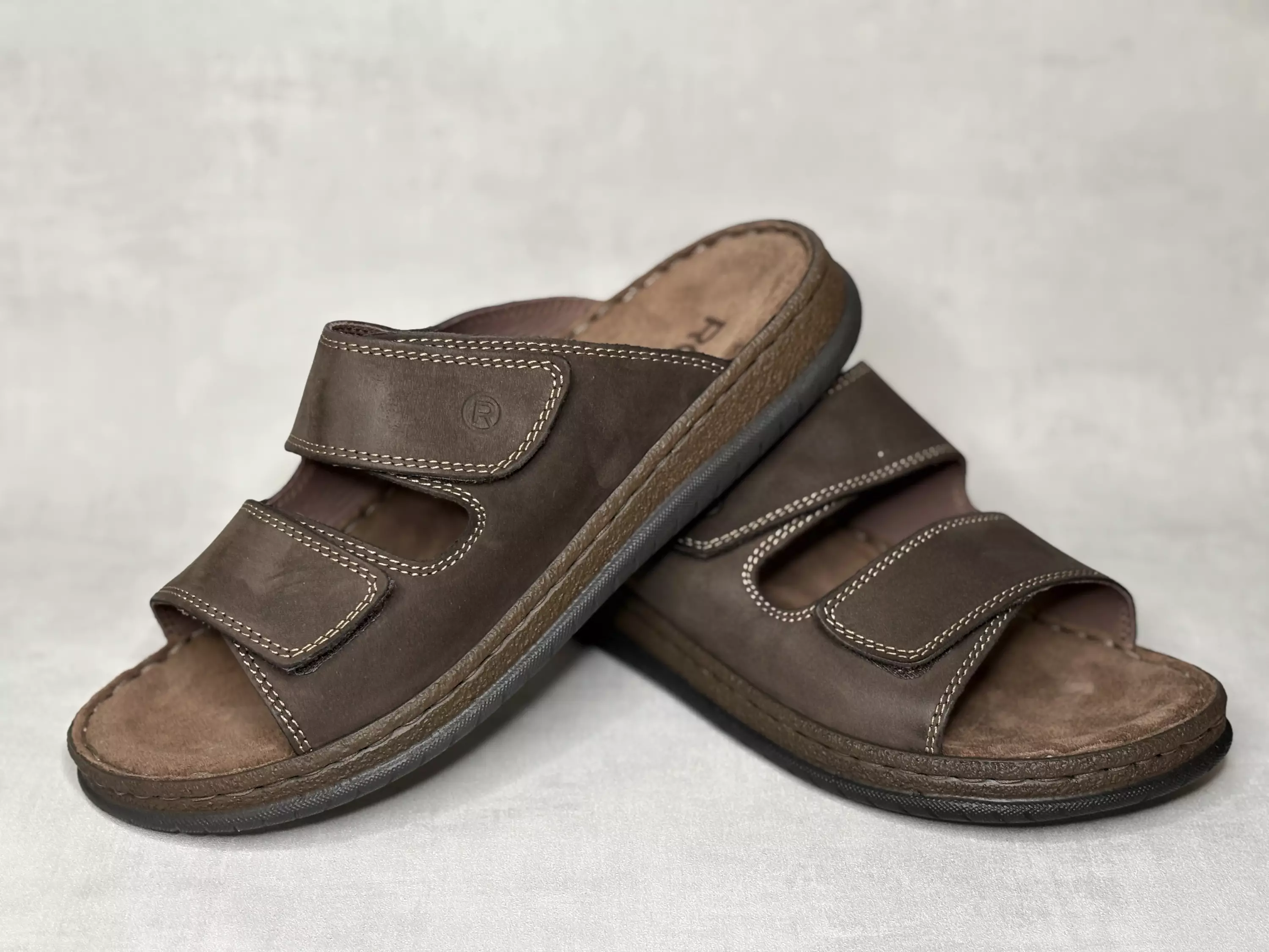 Tummanruskeat Rohde sandaalit. Nahkapintaiset sandaalit kahdella tarrasäätöisellä remmillä. Nahkainen vuori ja nahkapintainen sisäpohja. Kannan korkus noin 3cm ja pohjan korkeus päkiän alta noin 2cm.