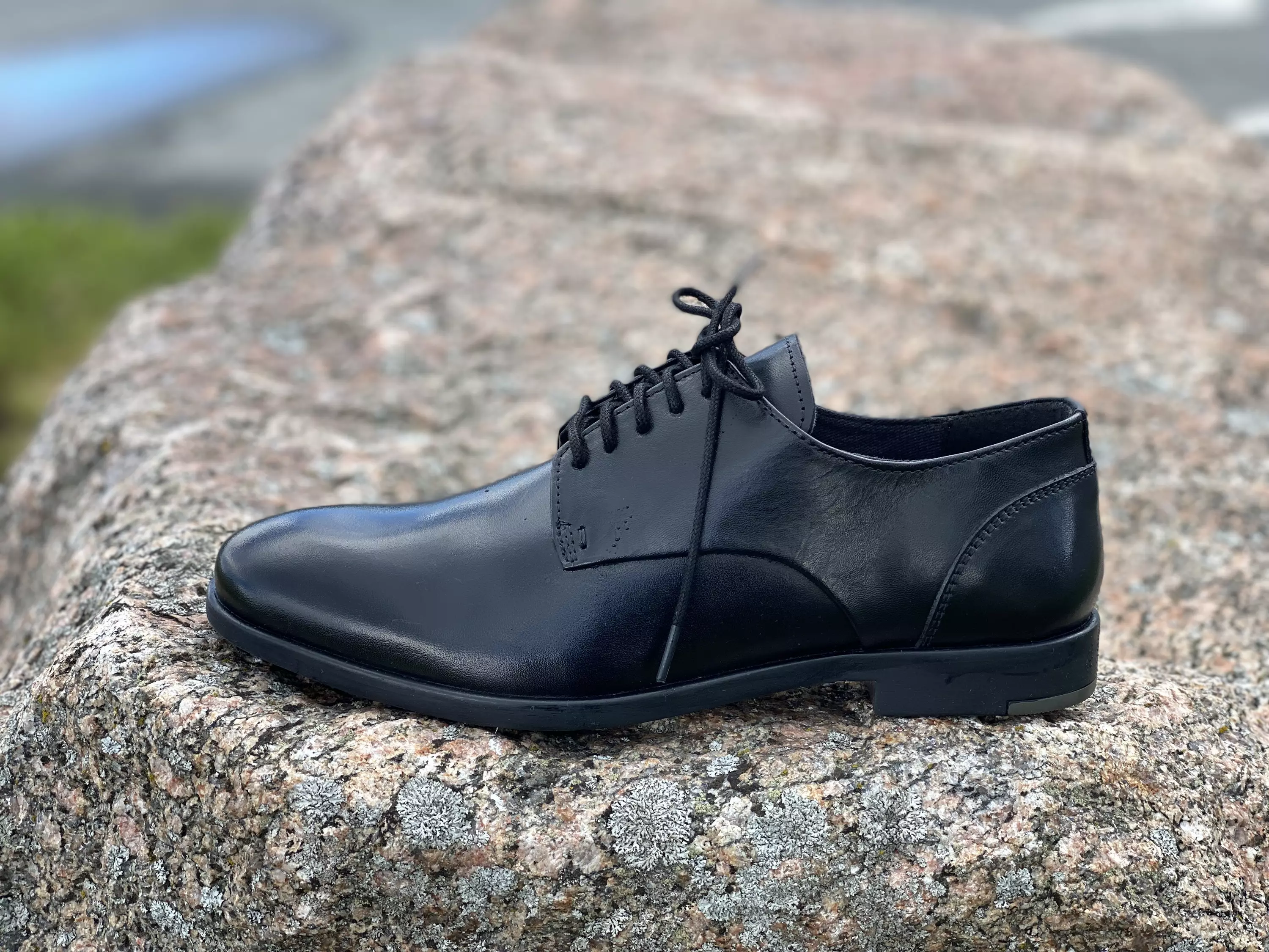Mustat Senator pukukengät. Klassiset nahkaiset pukukengät. Hieman kapeneva kärki. Tekstiilinen vuori ja nahkainen sisäpohja.