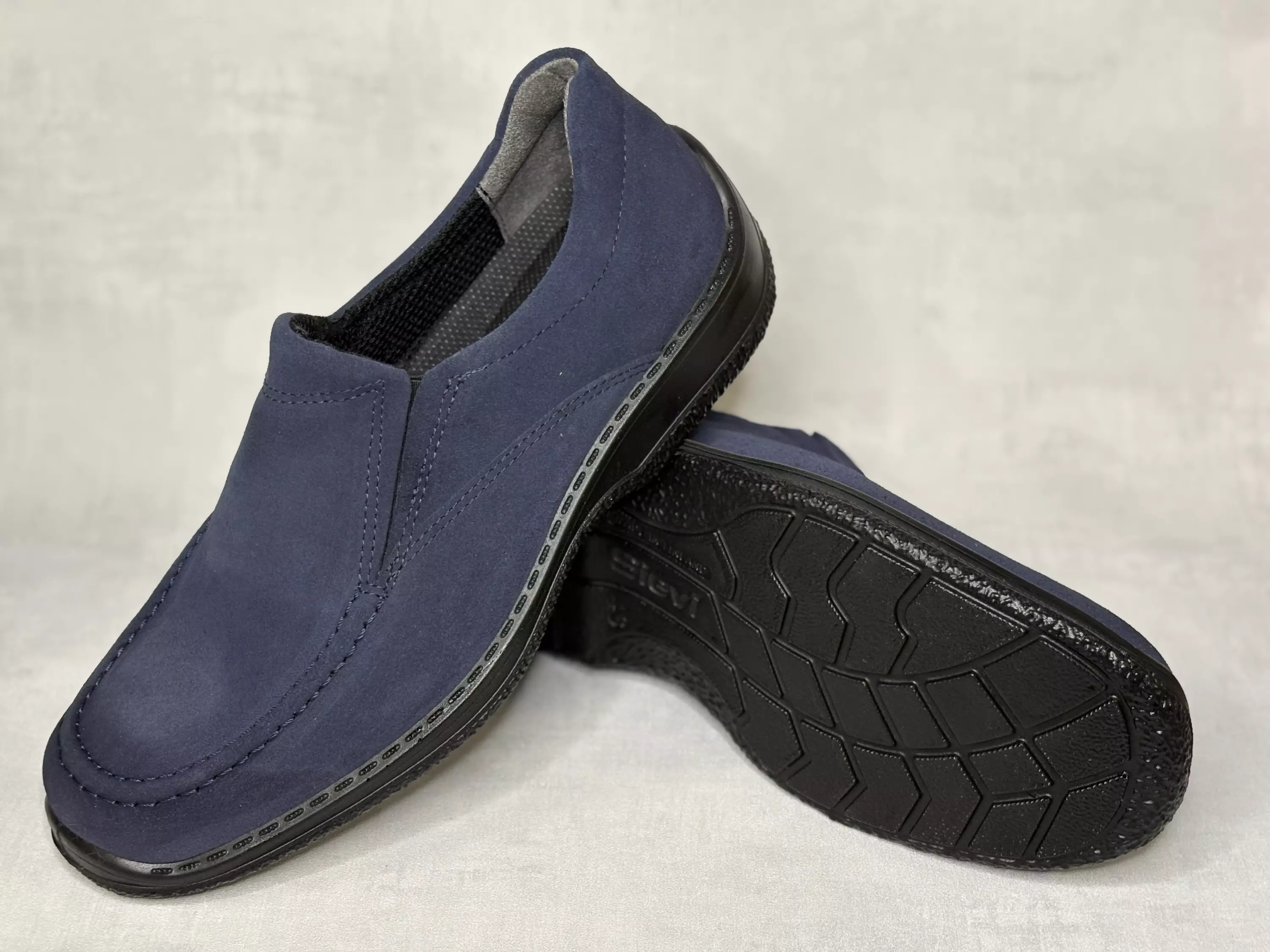 Siniset Sievi Anton kävelykengät. Mokkanahkaiset laoaferit on varustettu kahdella venykkeellä. Sievin antistaattiset laatujalkineet estävät staattisen sähkön aiheuttamat iskut. Joustava FlexStep-pohja, huolella suunniteltu lesti ja laadukkaat materiaalit tekevät Sievin jalkineista mukavat käyttää. Kaikki Sievin antistaattiset kengät on valmistettu testatuista materiaaleista Suomessa. Kengässä on irrotettava pohjallinen, joten tarvittaessa vaihdat kenkiin omia tarpeitasi parhaiten vastaavat pohjalliset.