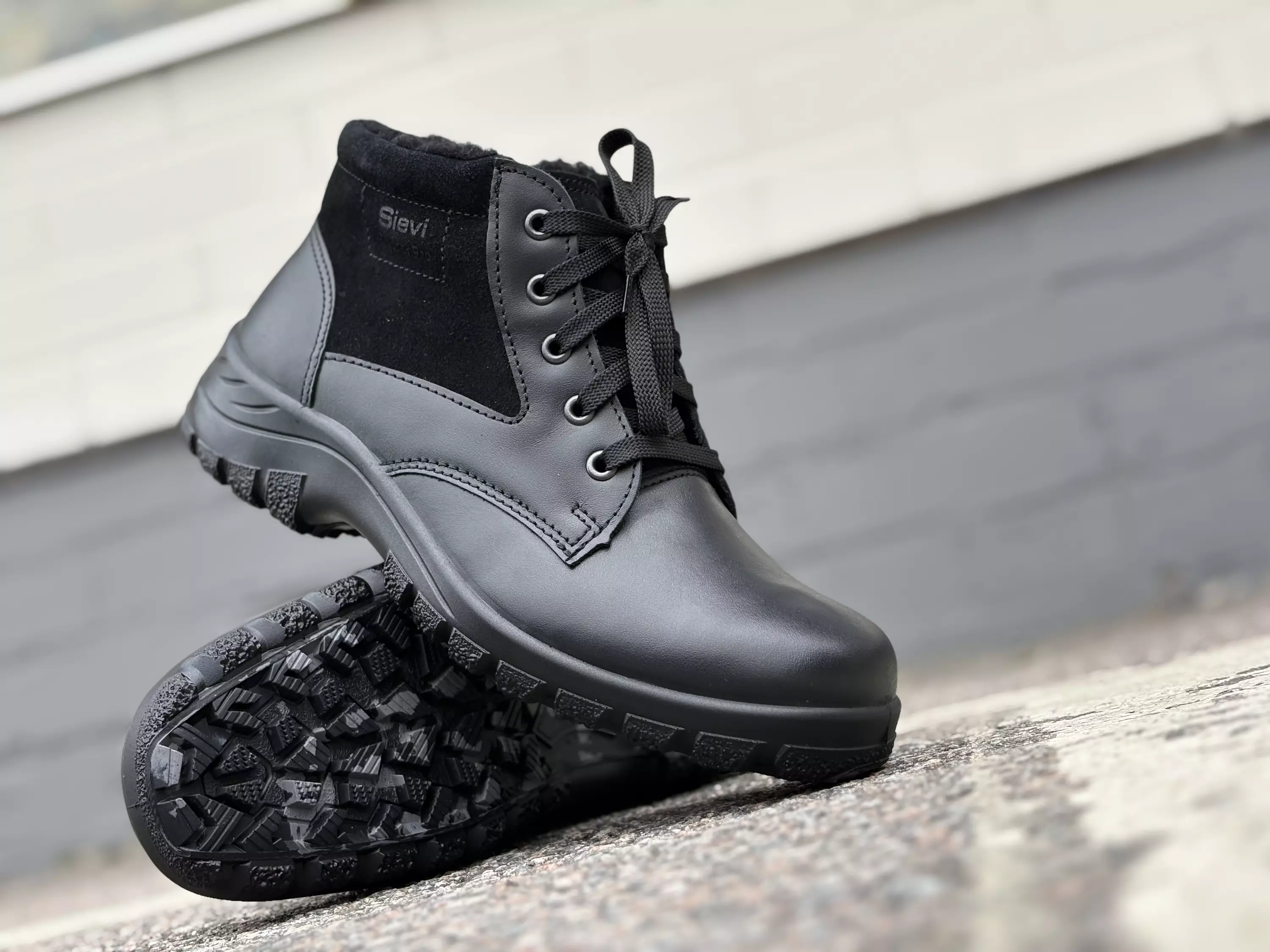 Kengän päällinen on Hydrotec®-käsitelyä helppohoitoista pintanahkaa, joka hylkii likaa ja vettä. Sievi TractionPro® on tukevarakenteinen kitkapohja, joka lisää pitoa liukkailla pinnoilla. Pohjan ainutlaatuinen kitkakumiseos yhdessä Sievi kehittämän FlexStep®-välikerroksen kanssa mahdollistaa pohjan joustavuuden kaikissa olosuhteissa. TractionPro®-pohjan teräväreunainen profiili on suunniteltu kitkan maksimoimiseen ja pidon säilymiseen erilaisilla pinnoilla liikuttaessa.