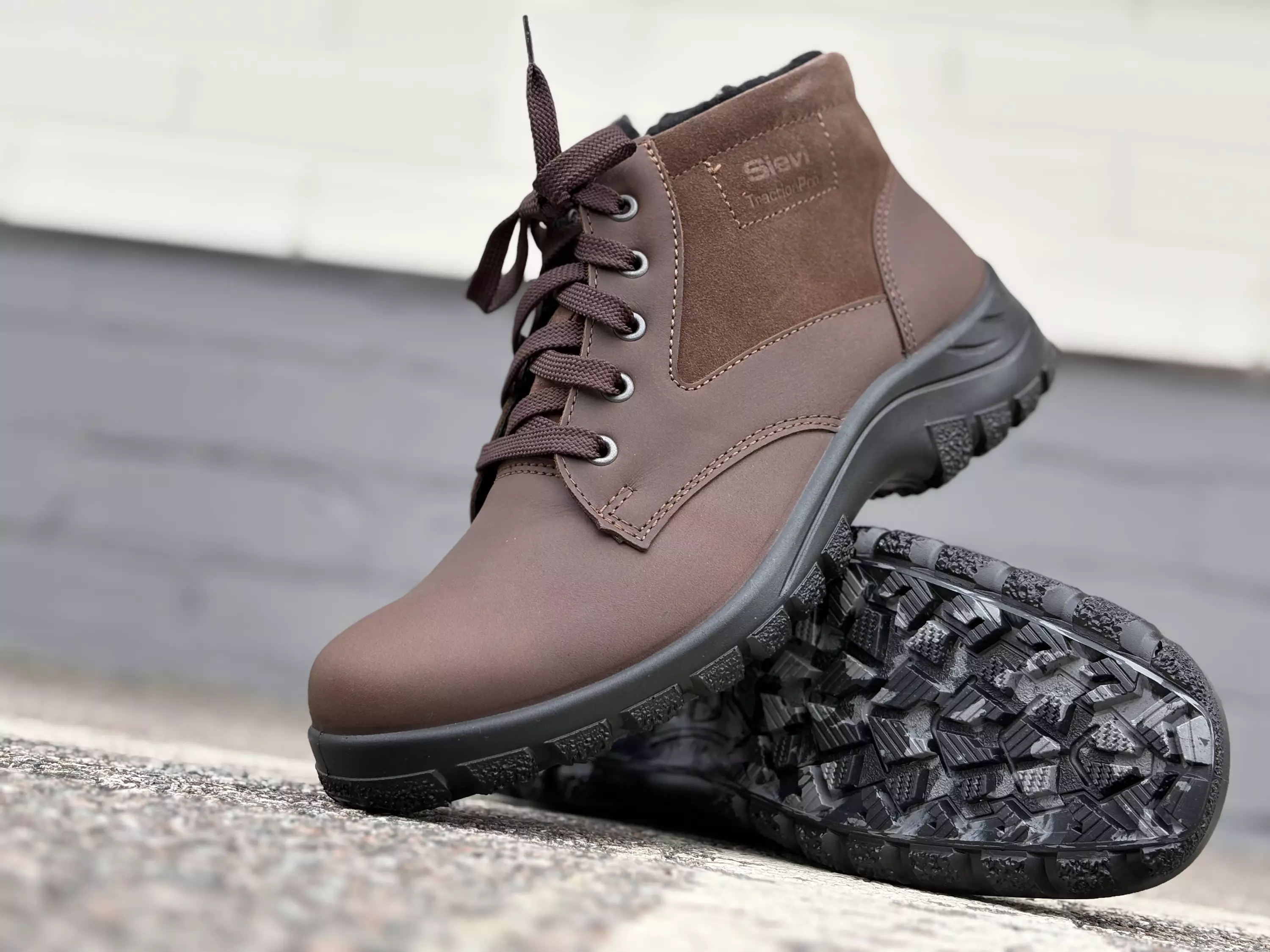Kengän päällinen on Hydrotec®-käsitelyä helppohoitoista nahkaa, joka hylkii likaa ja vettä. Sievi TractionPro® on tukevarakenteinen kitkapohja, joka lisää pitoa liukkailla pinnoilla. Pohjan ainutlaatuinen kitkakumiseos yhdessä Sievi kehittämän FlexStep®-välikerroksen kanssa mahdollistaa pohjan joustavuuden kaikissa olosuhteissa. TractionPro®-pohjan teräväreunainen profiili on suunniteltu kitkan maksimoimiseen ja pidon säilymiseen erilaisilla pinnoilla liikuttaessa.