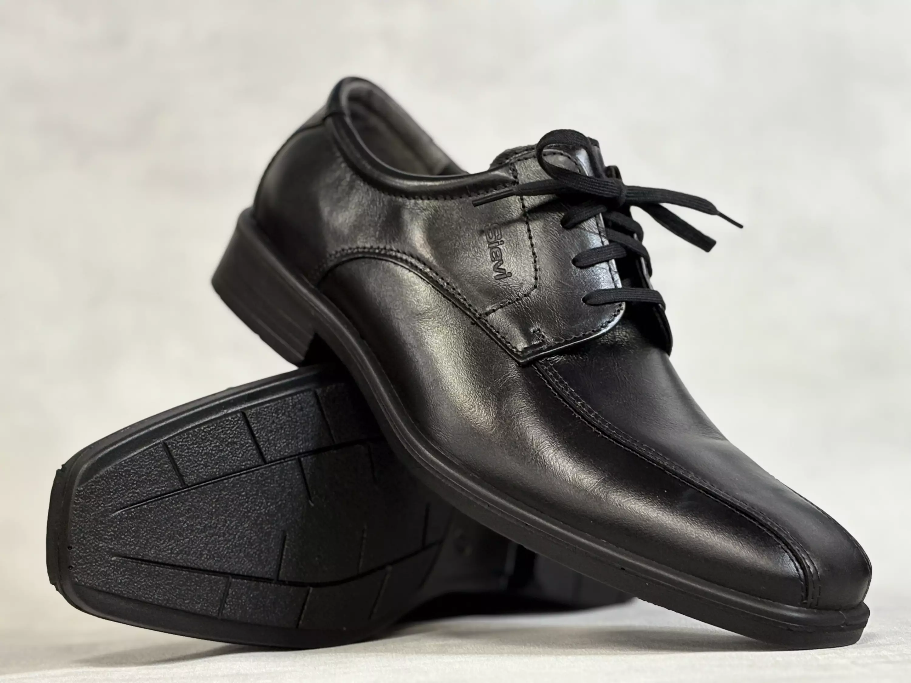 Mustat nahkaiset Sievin Mark kävelykengät. Sievi Mark on mallikas miesten kävelykenkä, jossa yhdistyvät Sievin klassinen käytännöllisyys ja pukukenkien tyylikkyys. Kengät ovat erinomaiset niin työhön, vapaalle kuin juhliinkin ja ne on valmistettu kestävästä, vettä ja likaa hylkivästä pintanahasta. Kengän Flexstep®-joustopohjan rakenne lieventää jalkoihin ja selkärankaan kohdistuvaa rasitusta sekä vaimentaa iskuja.