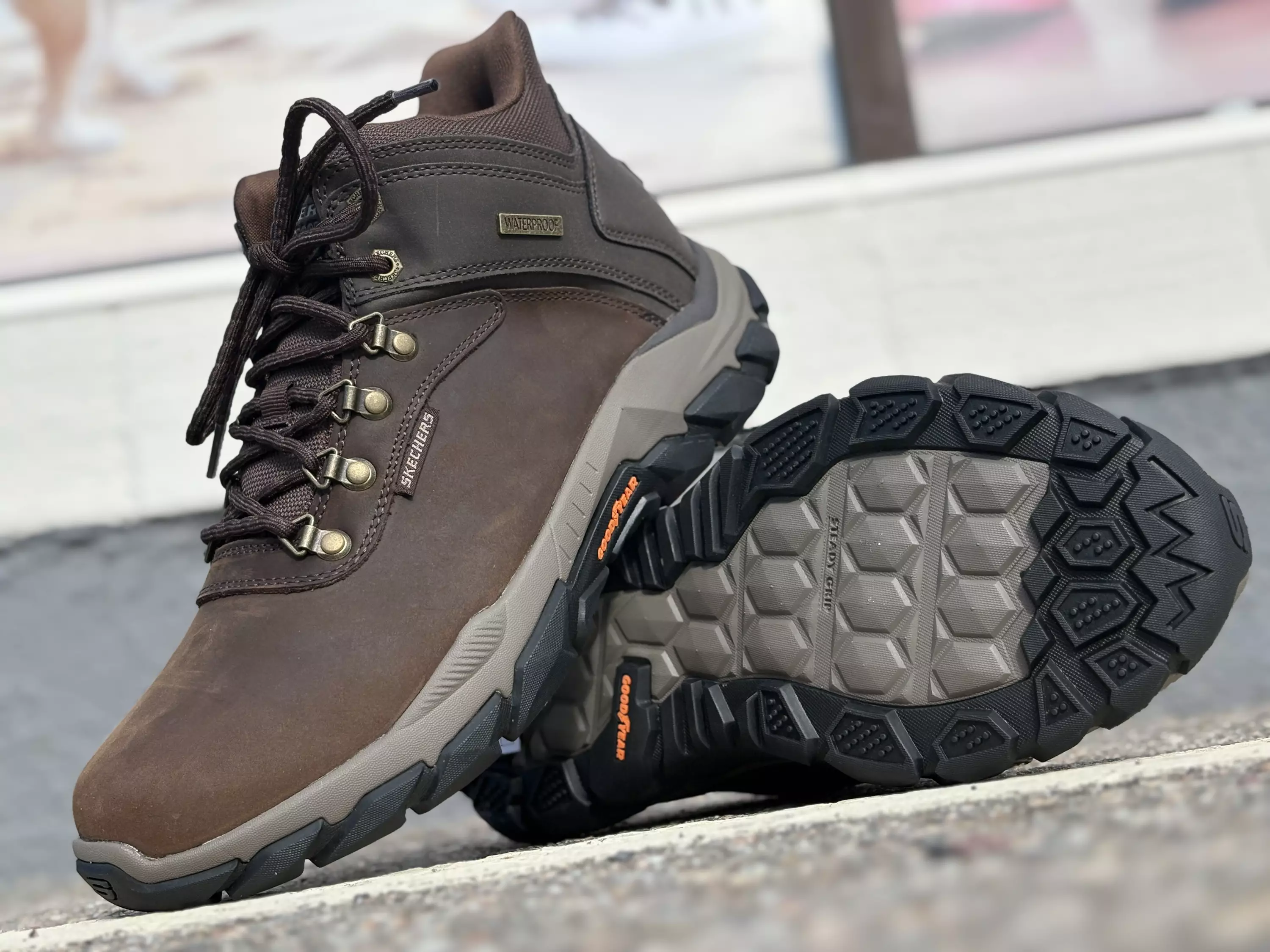 Ruskeat Skechers Santoro - Relic nilkkurit. 100% Waterproof eli vedenpitävät! Pitävä Goodyear ulkopohja, joka tarjoaa mainion pidon, vakauden ja kestävyyden, luistamaton pito sekä märissä, että kuivissa olosuhteissa. Kenkien pinta on yhdistelmä nahkaa ja synteettistä materiaalia. Slip-ins kenkälusikkanta, helppo pukea! Kantatyyny pitää jalan tukevasti paikallaan kengässä. Joustavien nauhojen avulla säädät kengät sopivalle kireydelle. Relaxed fit - eli Skechersin tilavampi lesti. Air Cooled Memory foam-pohjalliset. Kannan korkeus noin 4cm ja pohjan korkeus päkiän alta noin 2,5cm. Varren korkeus noin 10cm.