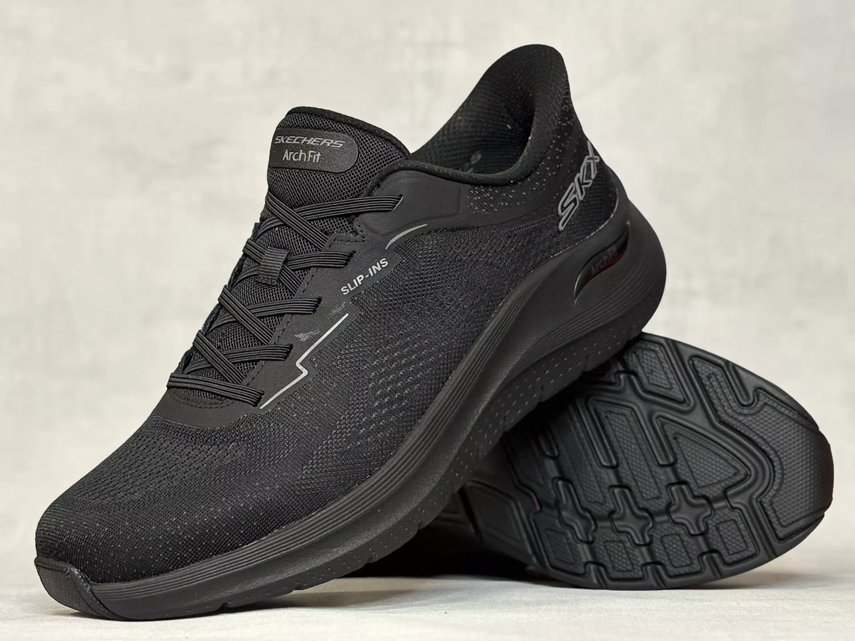 Mustat Skechers Arch Fit 2.0 - Rovant lenkkarit. Slip-ins kenkälusikkakannalla varustetut kengät on helppo sujauttaa jalkaan. Joustavat venykenauhat (eivät ole säädettävissä) helpottavat pukemista ja parantavat kenkien istuvuutta. Arch Fit 2.0 holvikaarentuki. Skechers Classic Fit, eli normaali lestimitoitus. Kannan korkeus noin 4cm ja pohjan korkeus päkiän alta noin 2,5cm.