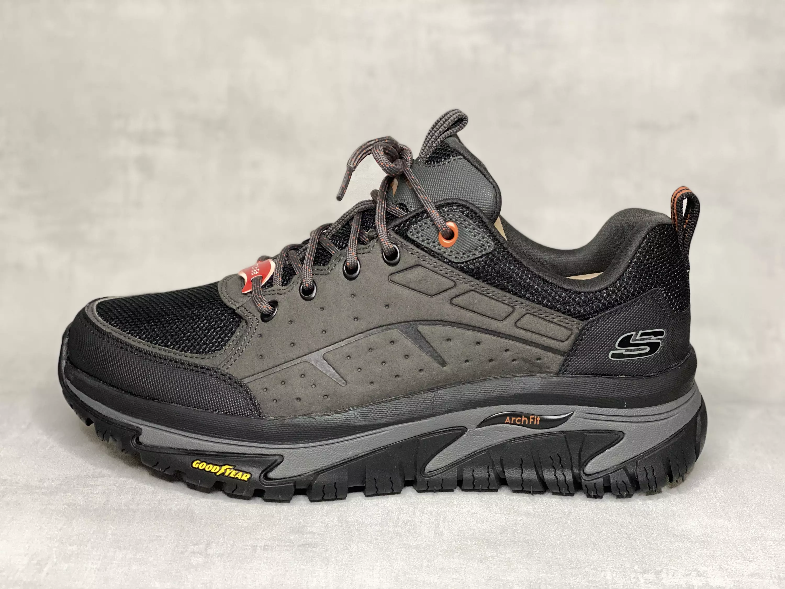 Tummanharmaat Skechers Arch Fit Road Walker - Vernal lenkkarit. Goodyear-kumipohjalla on korkea kulutuskestävyys ja se tarjoaa ylivoimaista pitoa erilaisissa sääolosuhteissa ja erilaisilla pinnoilla. Arch Fit-holvikaarentuella varustetut pohjalliset, jotka ovat myös vaihdettavat! Tarvittaessa näihin kävelykenkiin sujahtaa omia tarpeitasi parhaiten vastaavat pohjalliset. Kenkien pinta on nahan ja synteettisen materiaalin yhdistelmä. Nauhojen avulla kengät on helppo säätää omaan jalkaan sopiviksi..