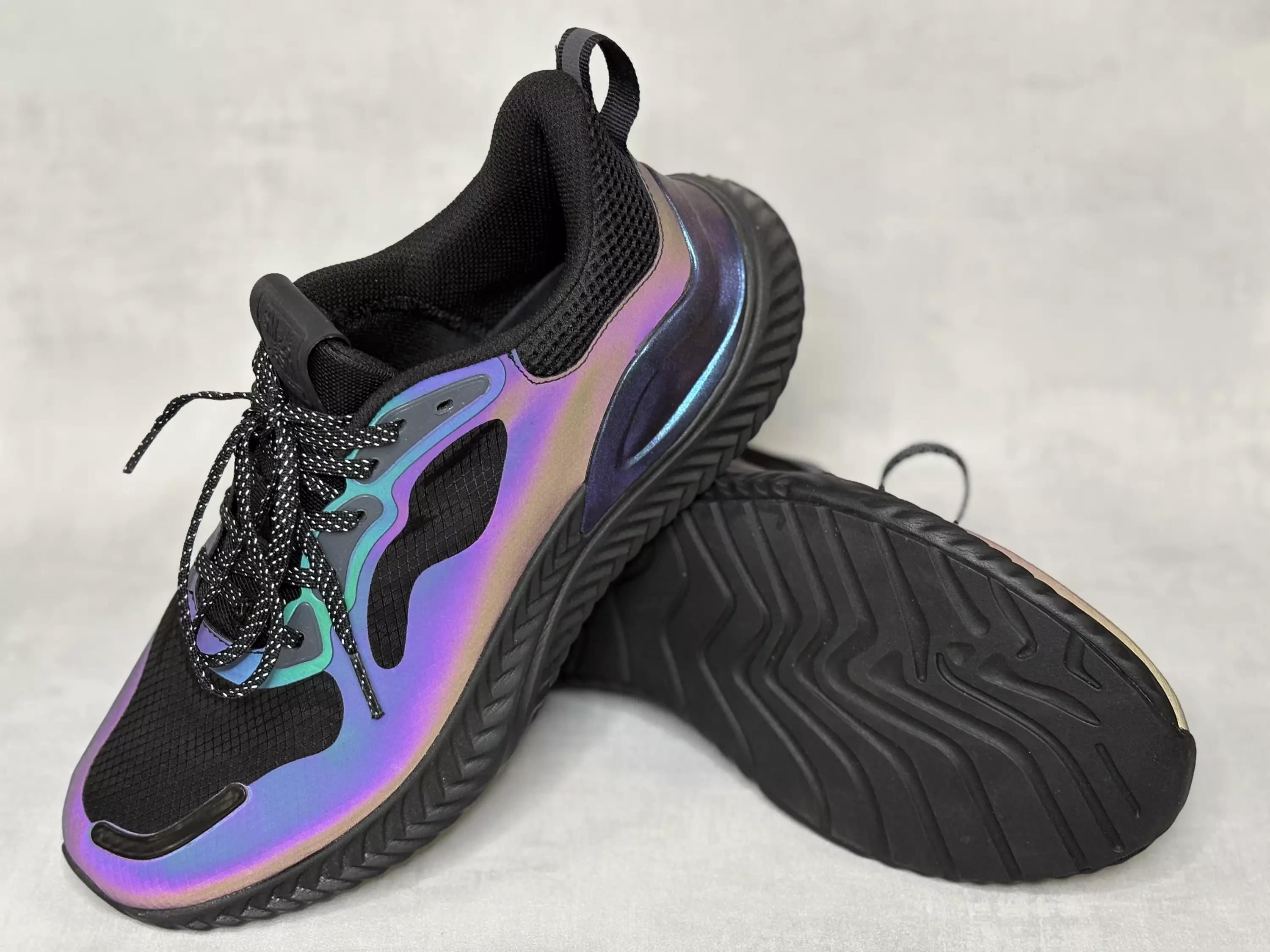 Pääväriltään mustat Steve Madden Slater lenkkarit. Upeat valoa heijastavat osiot saavat kengän hohtamaan valossa upeissa violetin sävyissä ja kenkä on kuin kirkasvärisin kameleontti konsanaan! Koppakuoriaisenkiiltävä kantaosa ja ärhäkkä musta ulkopohja. Pehmeät pohjalliset, joiden tilalle vaihdat tarvittaessa omaan jalkaasi parhaiten sopiva pohjalliset!