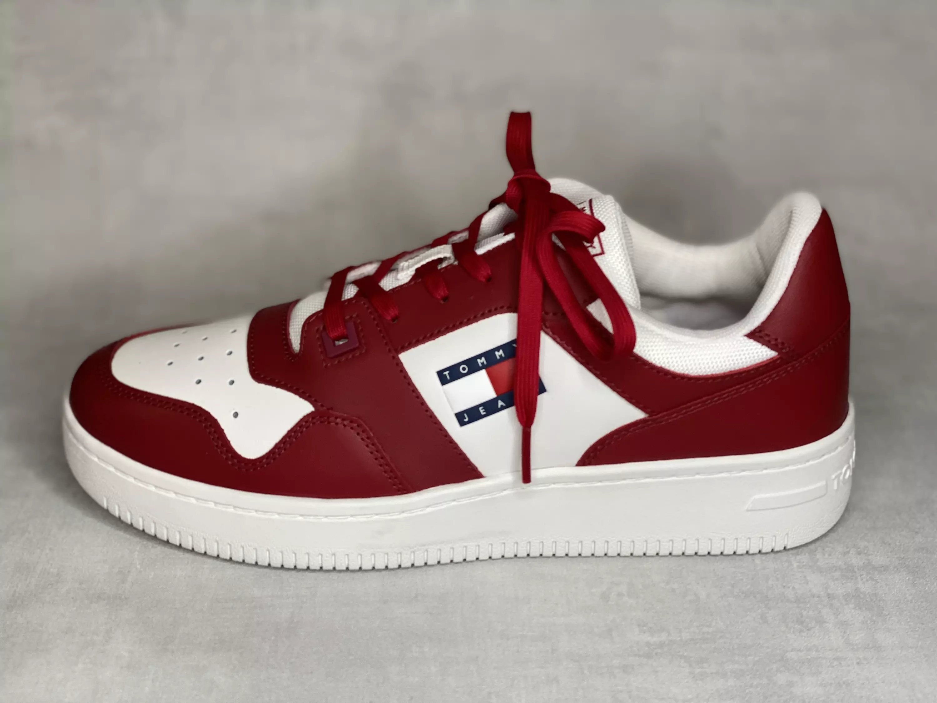 Puna-valkoiset Tommy Jeans Retro Basket ESS lenkkarit