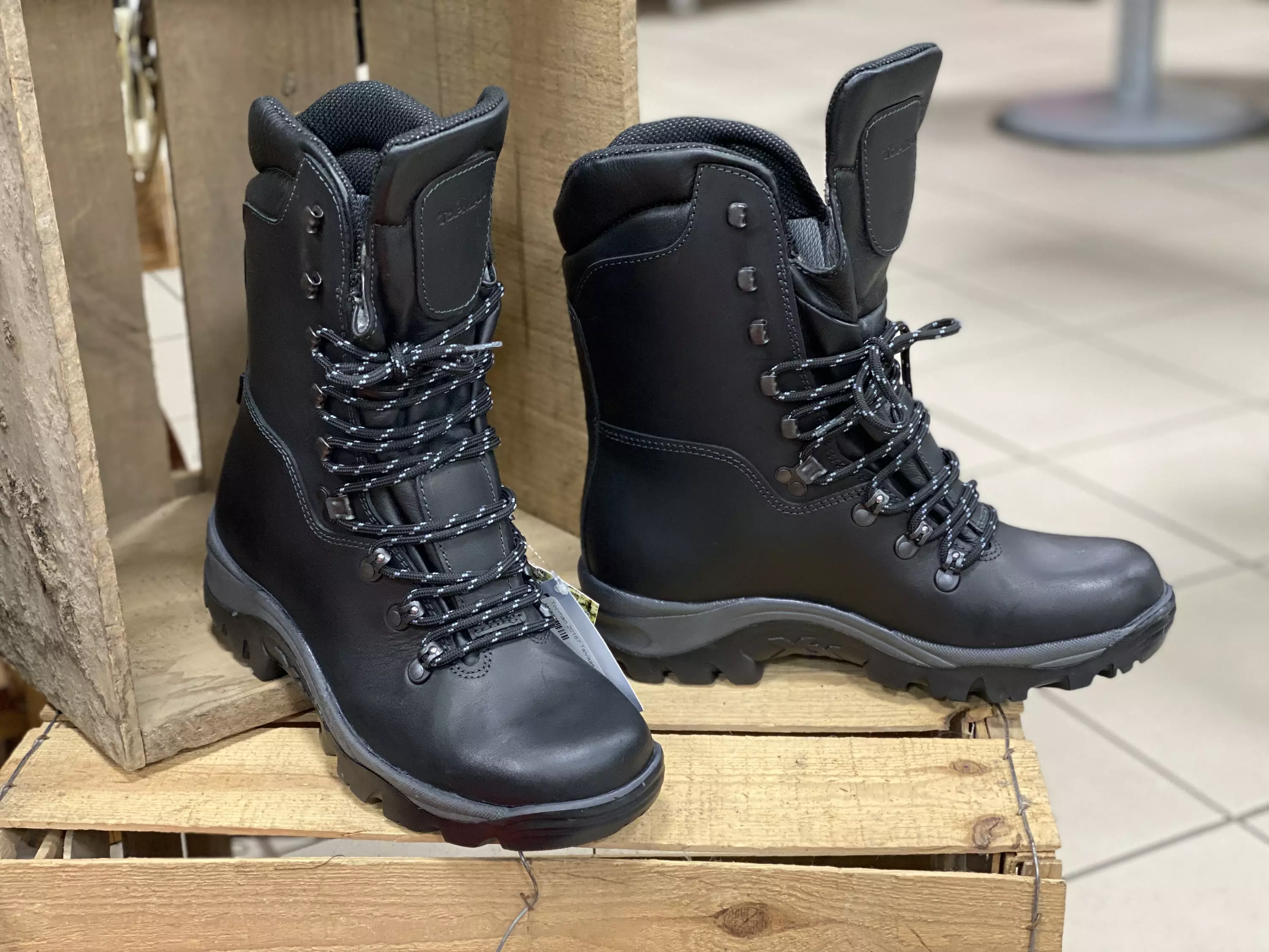 Mustat vedenpitävät Topman Talvikas ulkoilukengät pitkällä varrella, kitkapohjalla ja nauhoilla