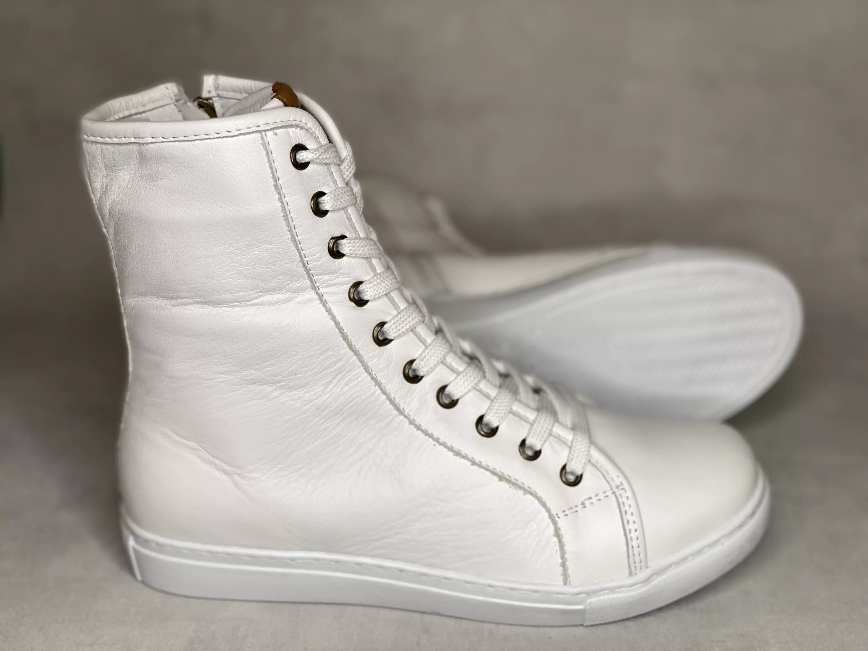 Valkoiset korkeavartiset Andrea Conti nahkatennarit