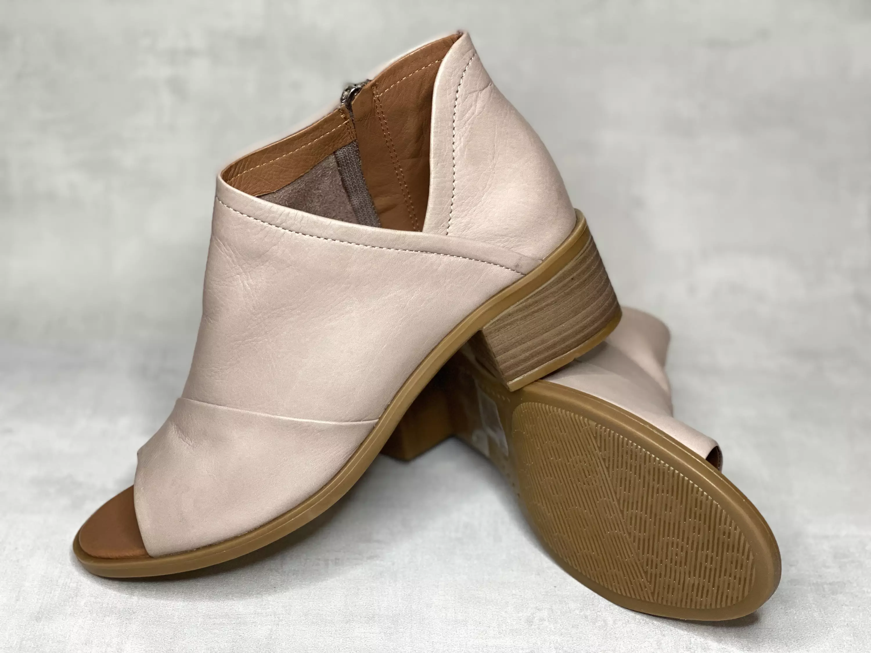 Beiget avokärkiset Andea Conti sandaalit. Kauniit matalakorkoiset korkokengät. Ihanan pehmeää nahkaa, joka mukautuu käytössä juuri sinun jalkaasi sopivaksi. Hillitty, mielenkiintoinen muotoilu, johon kengän leikkaukset antavat ilmettä. Sisäsyrjällä pukemista helpottava vetoketju. Maltillinen 4,5cm korkea korko.