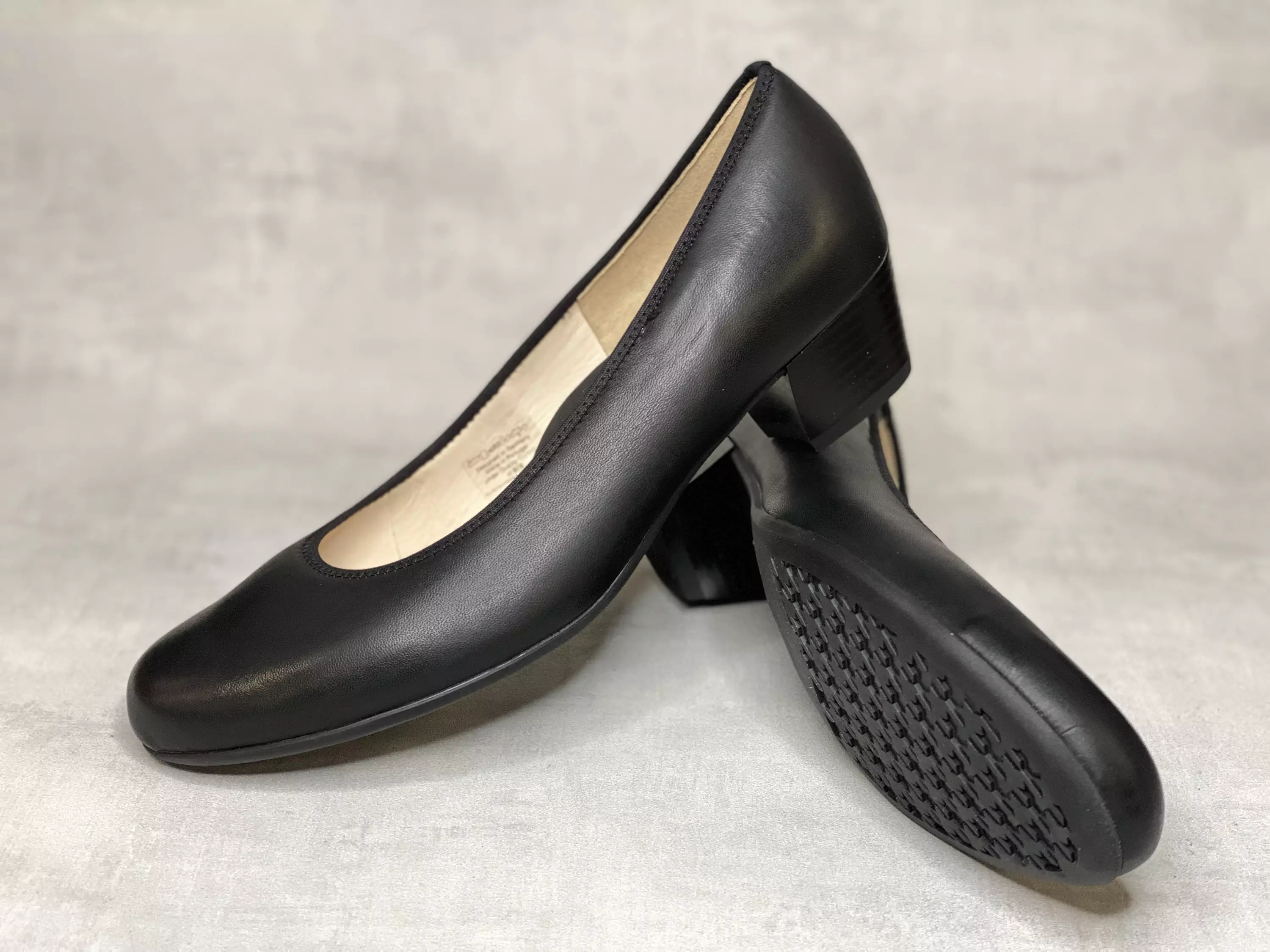 Mustat Ara avokkaat. Klassiset matalakorkoiset korkokengät. Nahkakenkä vain paranee käytössä. Pehmeä High Soft sisäpohja tuntuu jalan alla mukavalta. Kannan korkeus noin 5,3cm, pohja edestä noin 0,5cm.