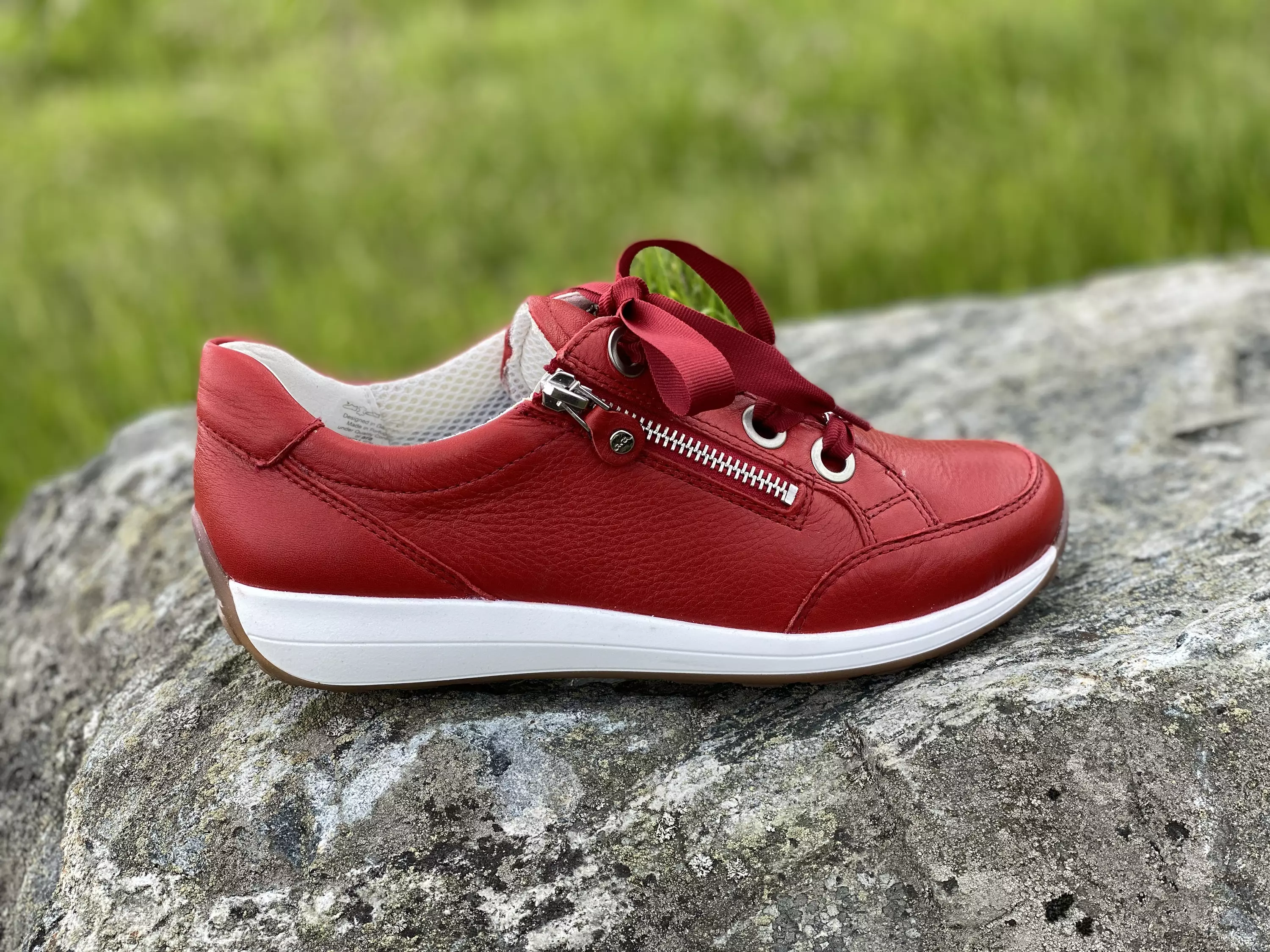 Punaiset Ara Osaka nahkaiset kävelykengät pukemista helpottavalla vetoketjulla ja High soft-pohjallisella