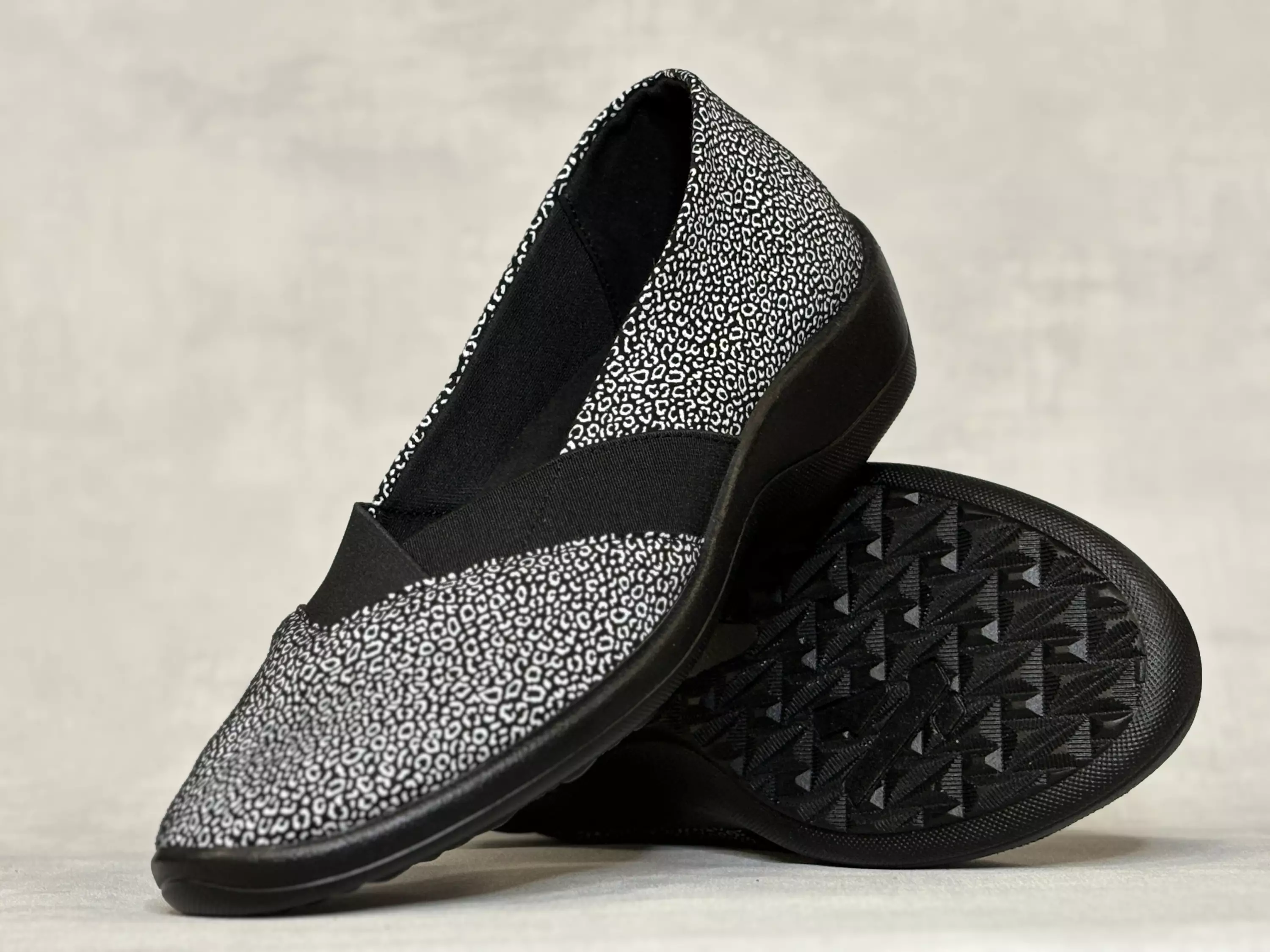 Mustat Arcopedico K7 Acadia kävelykengät valkoisilla täpläkuvioilla