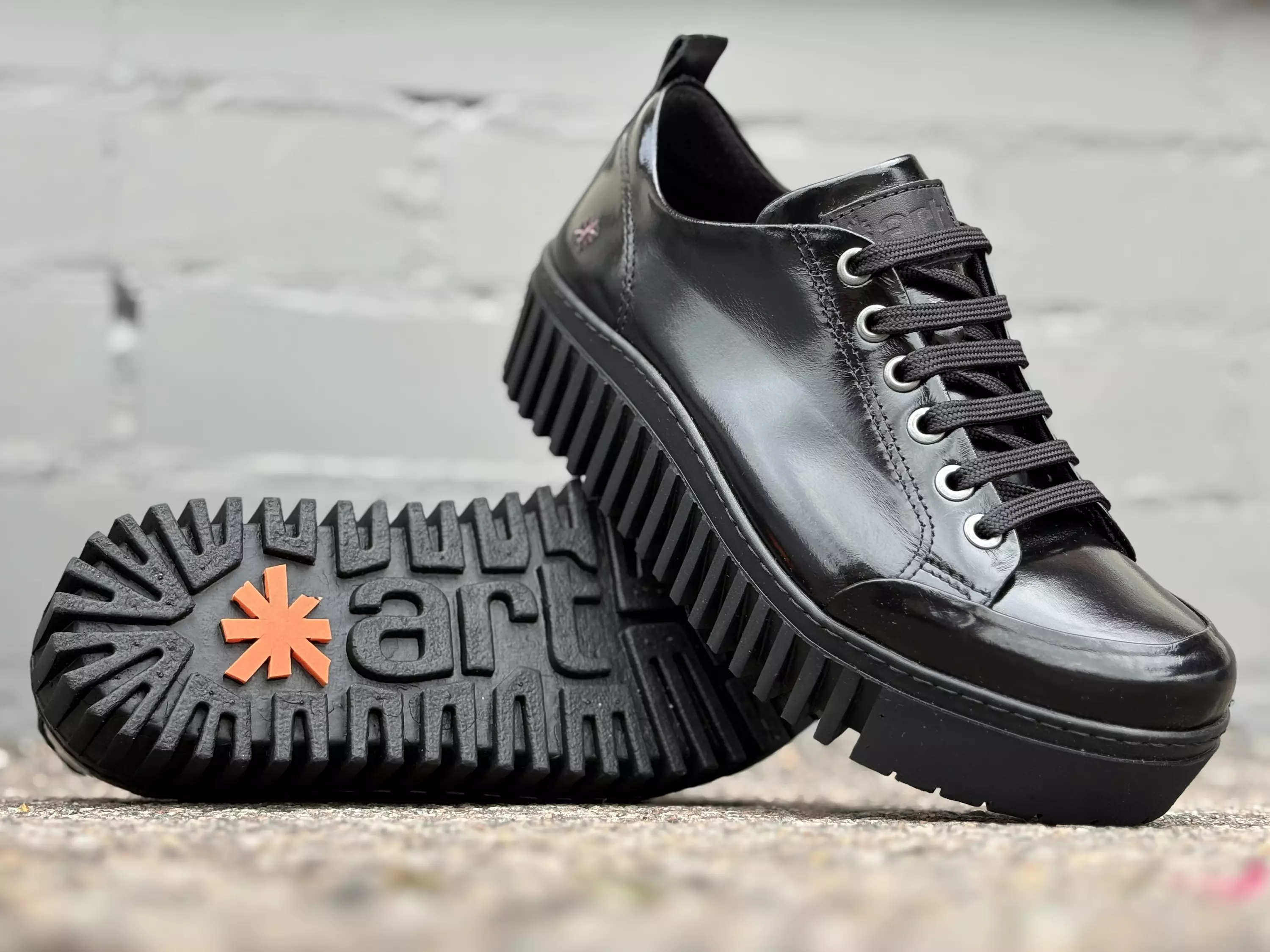 Mustat paksupohjaiset Art Nappa Shinny Black kävelykengät