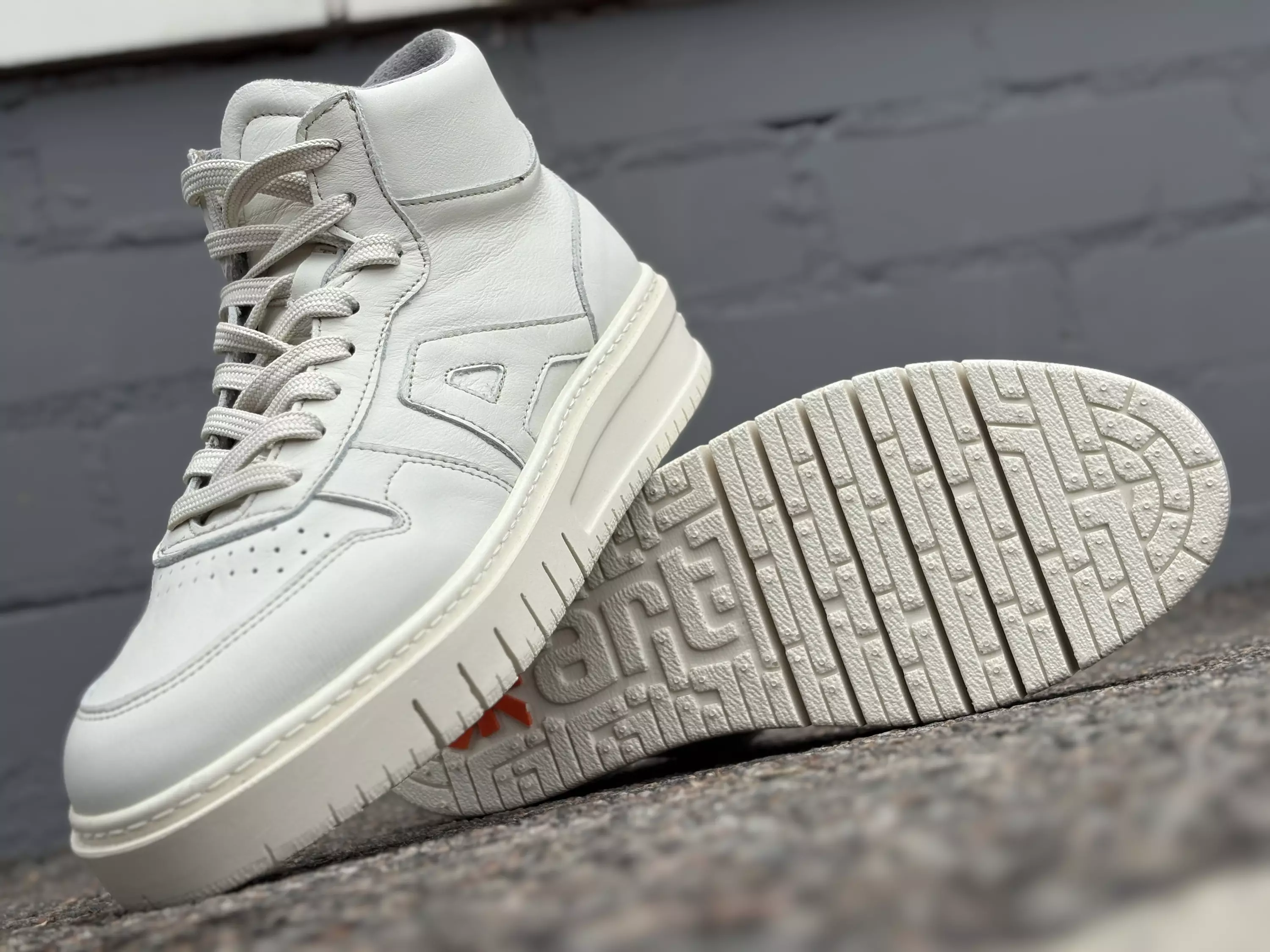 Kermanvalkoiset Art kävelykengät. Korkeavartiset kävelykengät ovat lämpimien kesärientojen klassikkokengät! Nauhalliset kävelykengät jalassa tamppaat niin kesän festarit kuin kävelyretket jätskikioskille. Iltissä on viimeistelemättömät raakareunat. Pehmeät, kevyesti muotoillut pohjalliset ovat vaihdettavat, joten tarvittaessa sujautat näihin tennareihin omia tarpeitasi parhaiten vastaavat pohjalliset. Kannan korkeus noin 3,5cm ja pohjan korkeus päkiän alta noin 2,5cm.