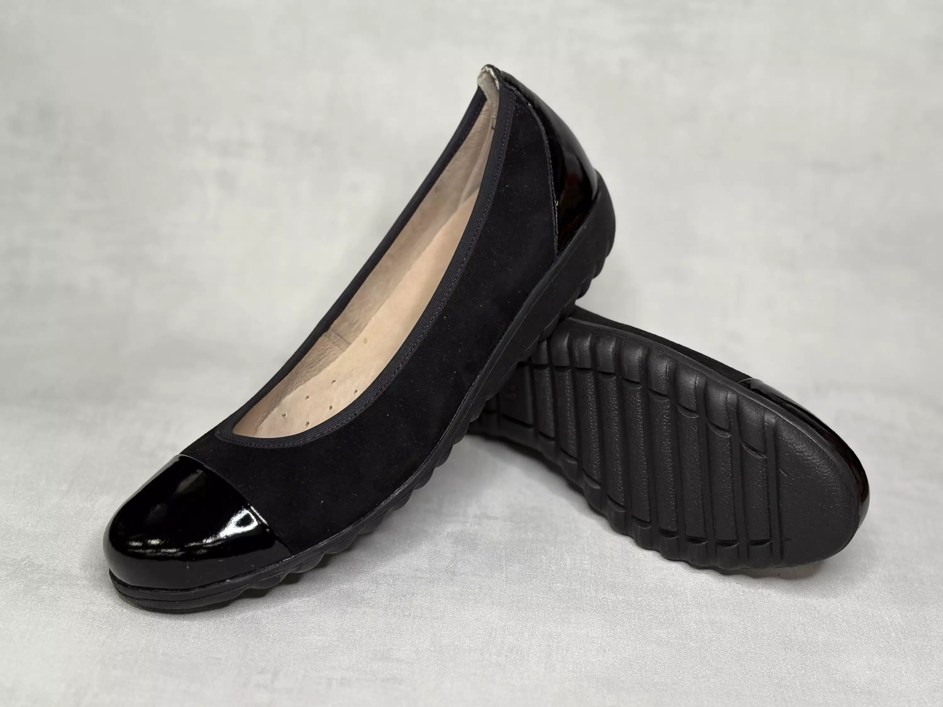 Mustat nupukkinahkaiset Caprice G ballerinat - lakerikärki ja -kanta