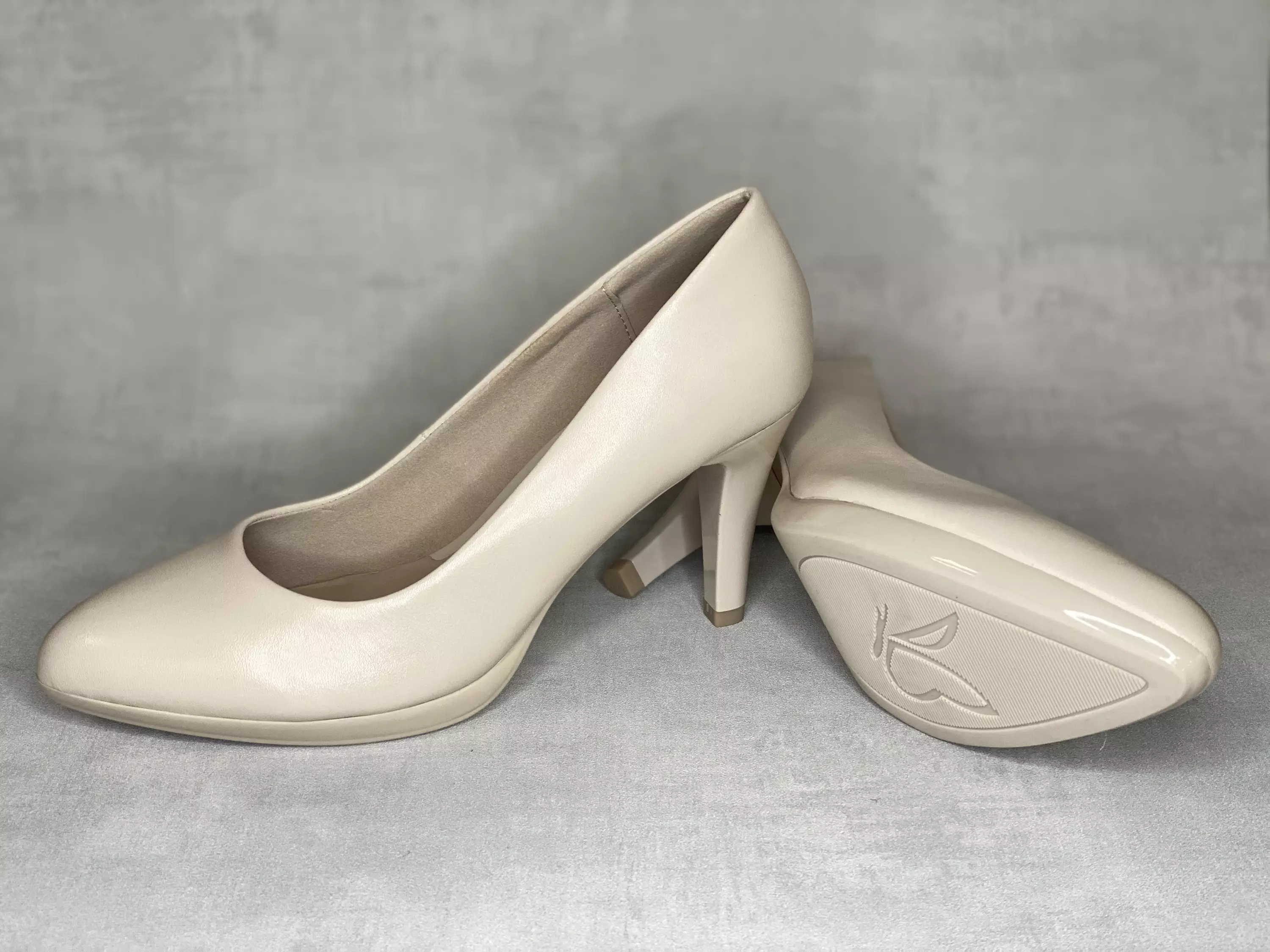 Luonnonvalkoiset Caprice Off White nappa platform avokkaat. Tyylikkäät kapenevakärkiset korkokengät. Kiiltäväpintainen noin 8,5cm korkea korko osuu tässä korkokengässä juuri oikealla tavalla kannan alle, saaden kengät tuntumaan hyvinkin tukevilta jalassa. Kärjen platform tasoittaa koron korkeutta 1,5cm verran. Lestimitoitukseltaan normaalit nahkakengät mukautuvat käytössä juuri sinun jalkaasi sopiviksi.
