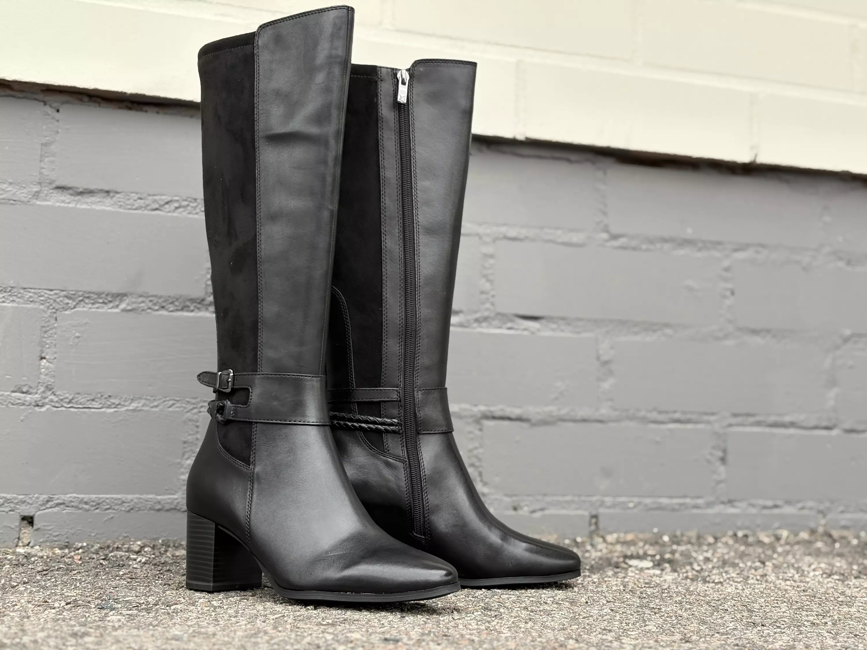 Mustat pitkävartiset, korolliset Caprice nahkasaappaat joustavalla takaosalla