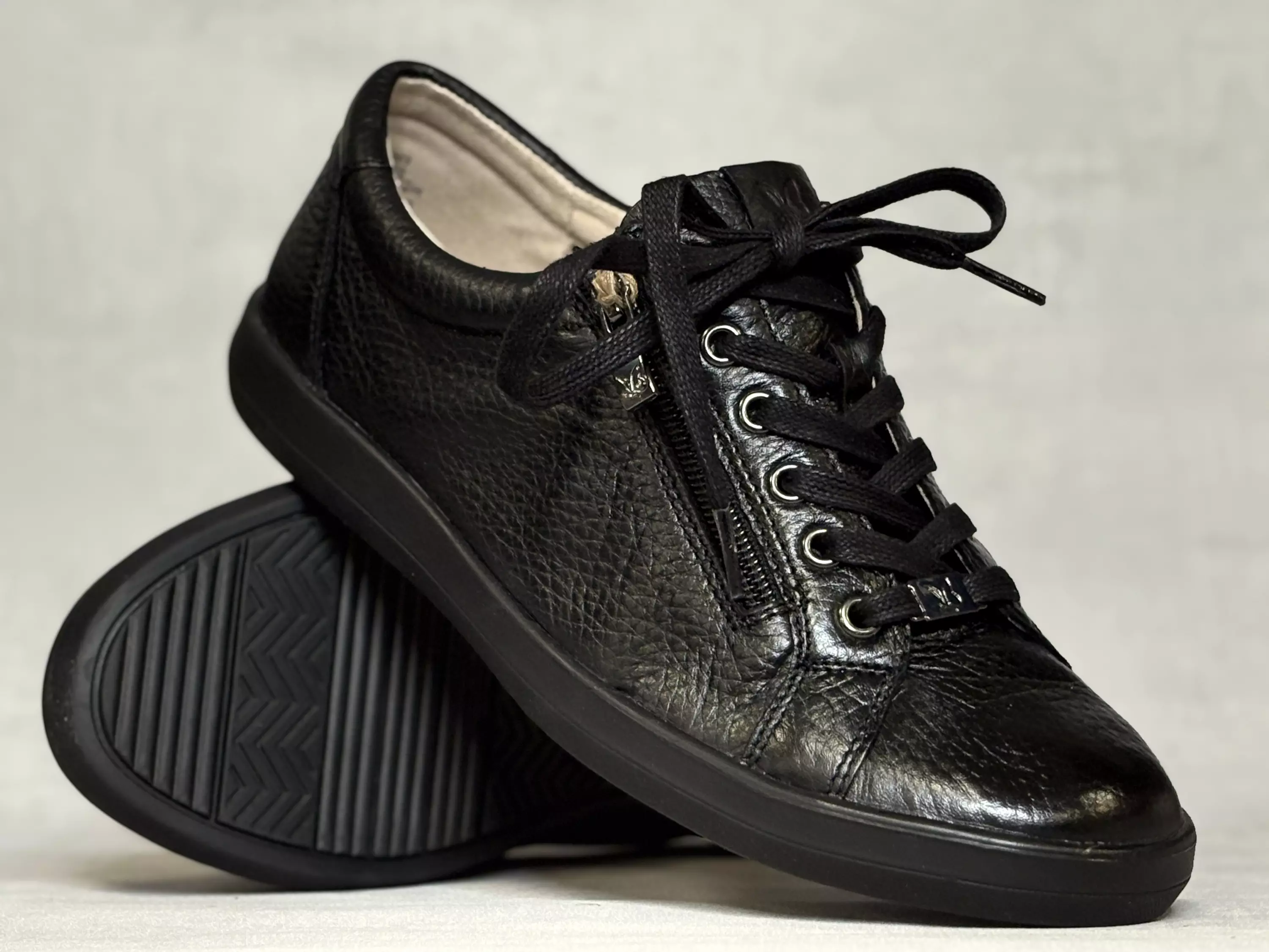 Mustat Caprice kävelykengät. Levehköllä H-lestillä varustetut peurannahkaiset kävelykengät. Nauhojen avulla säädät kengät helposti omaan jalkaan sopiviksi. Ulkosyrjälle sijoitettu vetoketju nopeuttaa pukemista. Tekstiilipintaiset Caprice pohjalliset ovat vaihdettavat, joten tarvittaessa sujautat kenkiin omia tarpeitasi parhaiten vastaavat pohjalliset. Pohjalliset voi myös pestä pesukoneessa viileällä pesuohjelmalla. Kannan korkeus noin 3cm, pohjan korkeus päkiän ala noin 1,5cm.