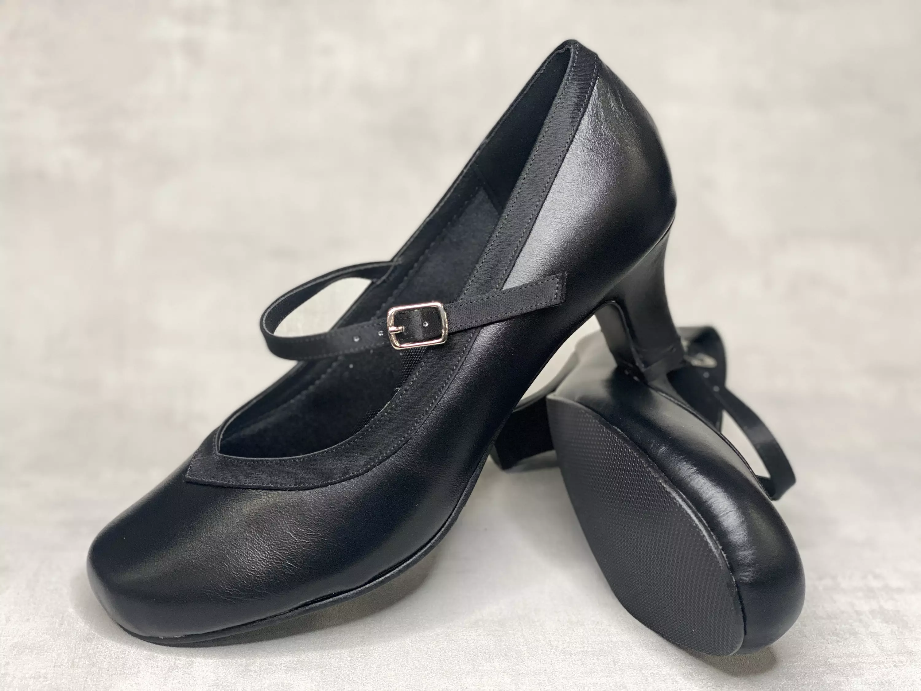 Mustat Chantana avokkaat. Klassiset nahkaiset korkokengät solkisäätöisellä satiiniremmillä. Solki on kiinni pienessä kenkien istuvuutta parantavassa venykkeessä.