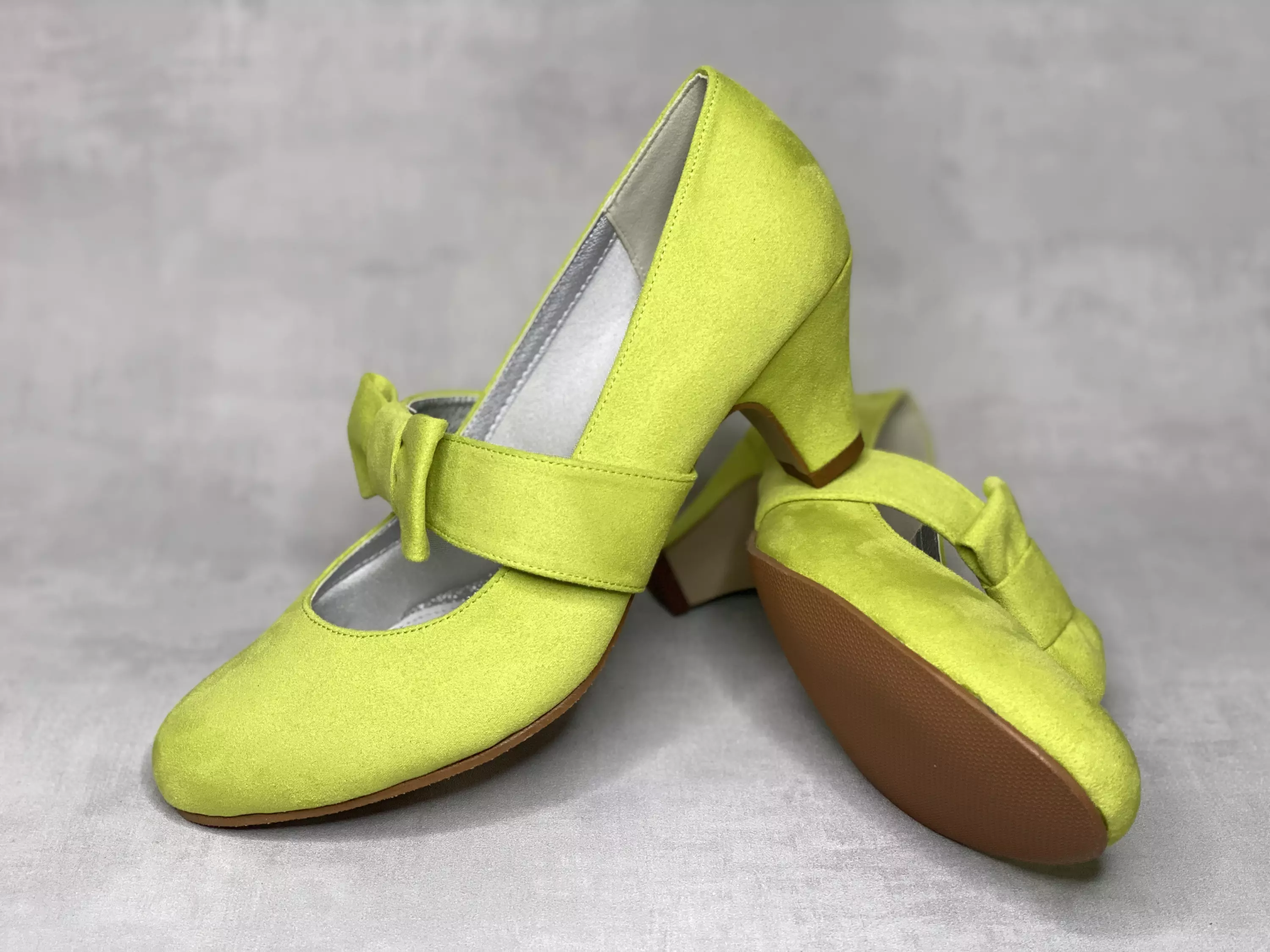 Limen vihreät Chantana korkokengät ihanalla rusettiremmillä, joka asettuu somasti jalkapöydän päälle. Kenkien pinta on pehmeää mikrokuitua. Rusetin alla on pienet venykkeet, joiden jouston ansiosta kengät on helppo pukea jalkaan. Lisäksi ne parantavat kengän istuvuutta. Chantana korkokengissä on maltillinen 5cm korkea korko, joka sopii mainiosti myös niille, jotka eivät ole tottuneet käyttämään korkekenkiä. Jalka on Chantanan korkokengissä mukavassa asennossa. Chantana korkokengissä voit antautua sujuvasti myös tanssin pyörteisiin!