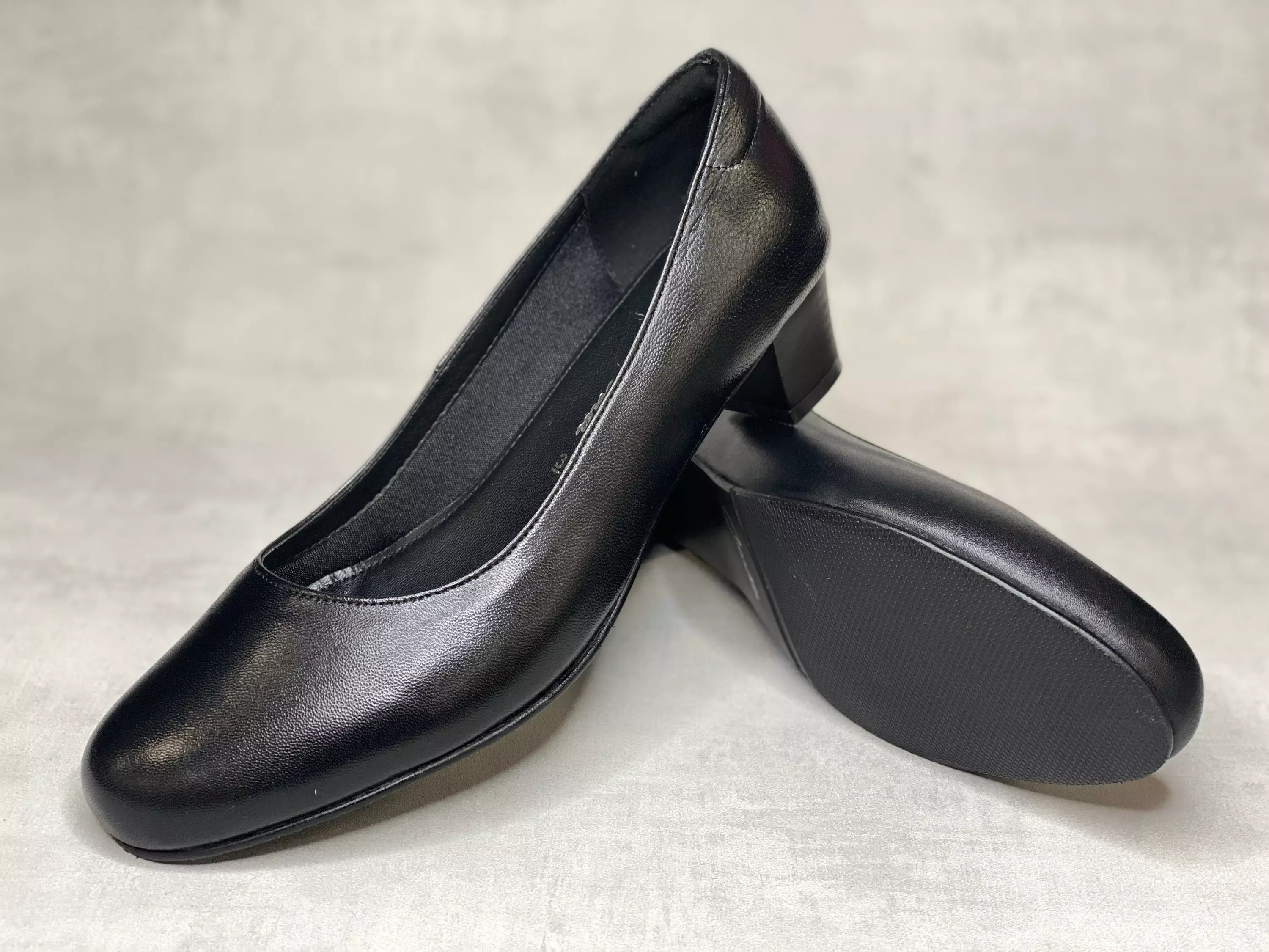 Mustat Chantana avokkaat. Klassiset matalakorkoiset korkokengät. Nahkainen kenkä mukautuu käytössä juuri omaan jalkaan sopivaksi.