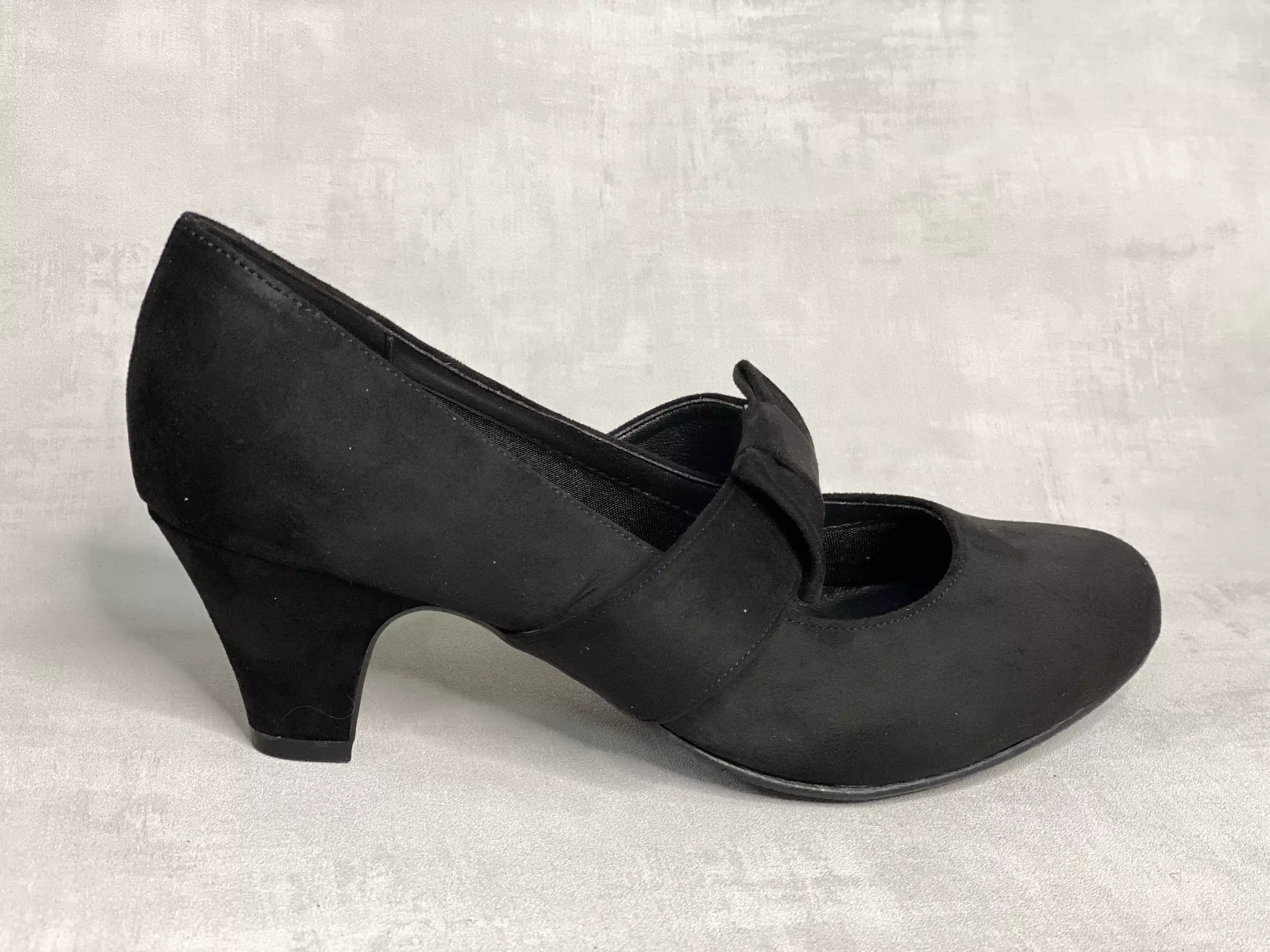 Mustat Chantana korkokengät ihanalla rusettiremmillä, joka asettuu somasti jalkapöydän päälle. Kenkien pinta on pehmeää mikrokuitua. Rusetin alla on pienet venykkeet, joiden jouston ansiosta kengät on helppo pukea jalkaan. Lisäksi ne parantavat kengän istuvuutta. Chantana korkokengissä on maltillinen 5cm korkea korko, joka sopii mainiosti myös niille, jotka eivät ole tottuneet käyttämään korkekenkiä. Jalka on Chantanan korkokengissä mukavassa asennossa. Chantana korkokengissä voit antautua sujuvasti myös tanssin pyörteisiin!