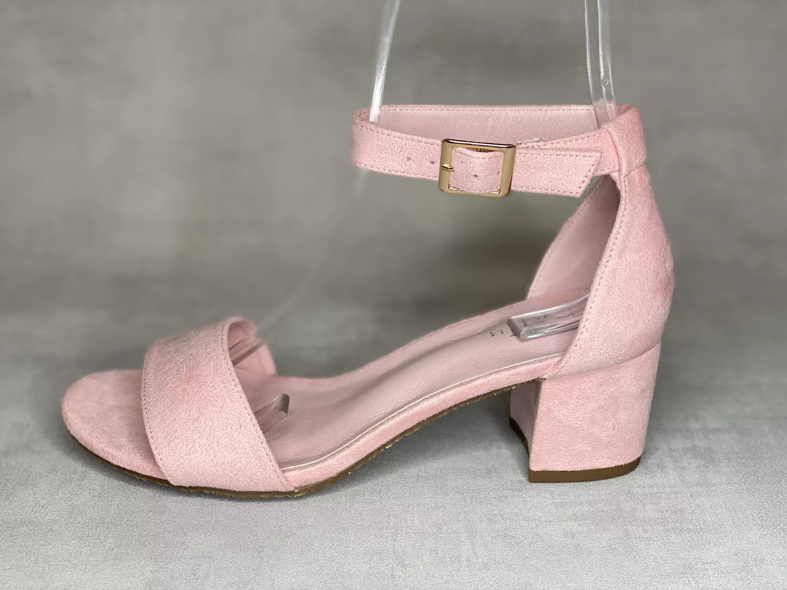 Hempeän vaaleanpunaiset nilkkaremmilliset Duffy sandaalit. Mokkanahkaa muistuttava tekstiilipinta. Soljellinen nilkkaremmi, jossa pieni istuvuutta parantava venyke. Kannan korkeus noin 5,5cm.