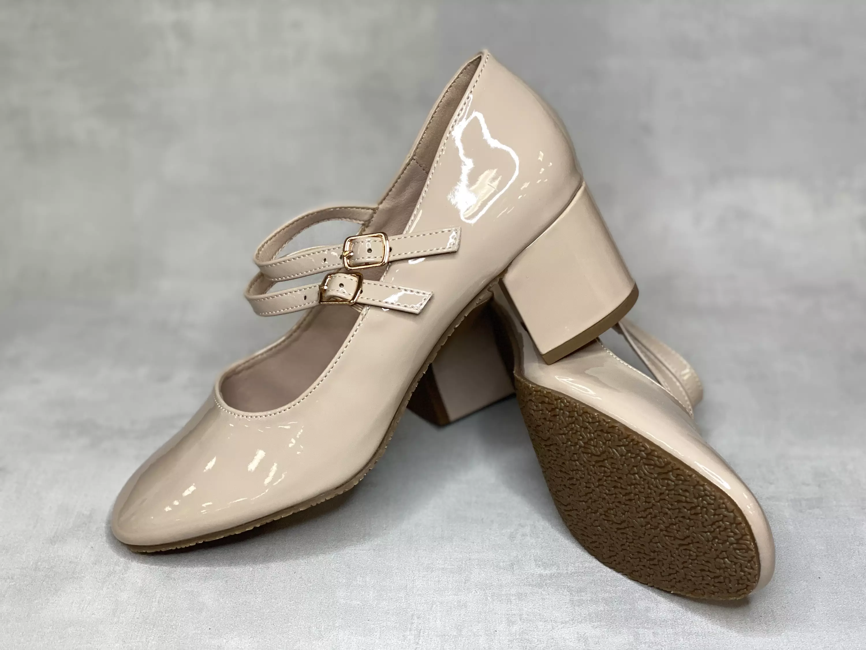 Vaalean beiget lakerinkiiltävät Duffy avokkaat kahdella soljellisella remmillä