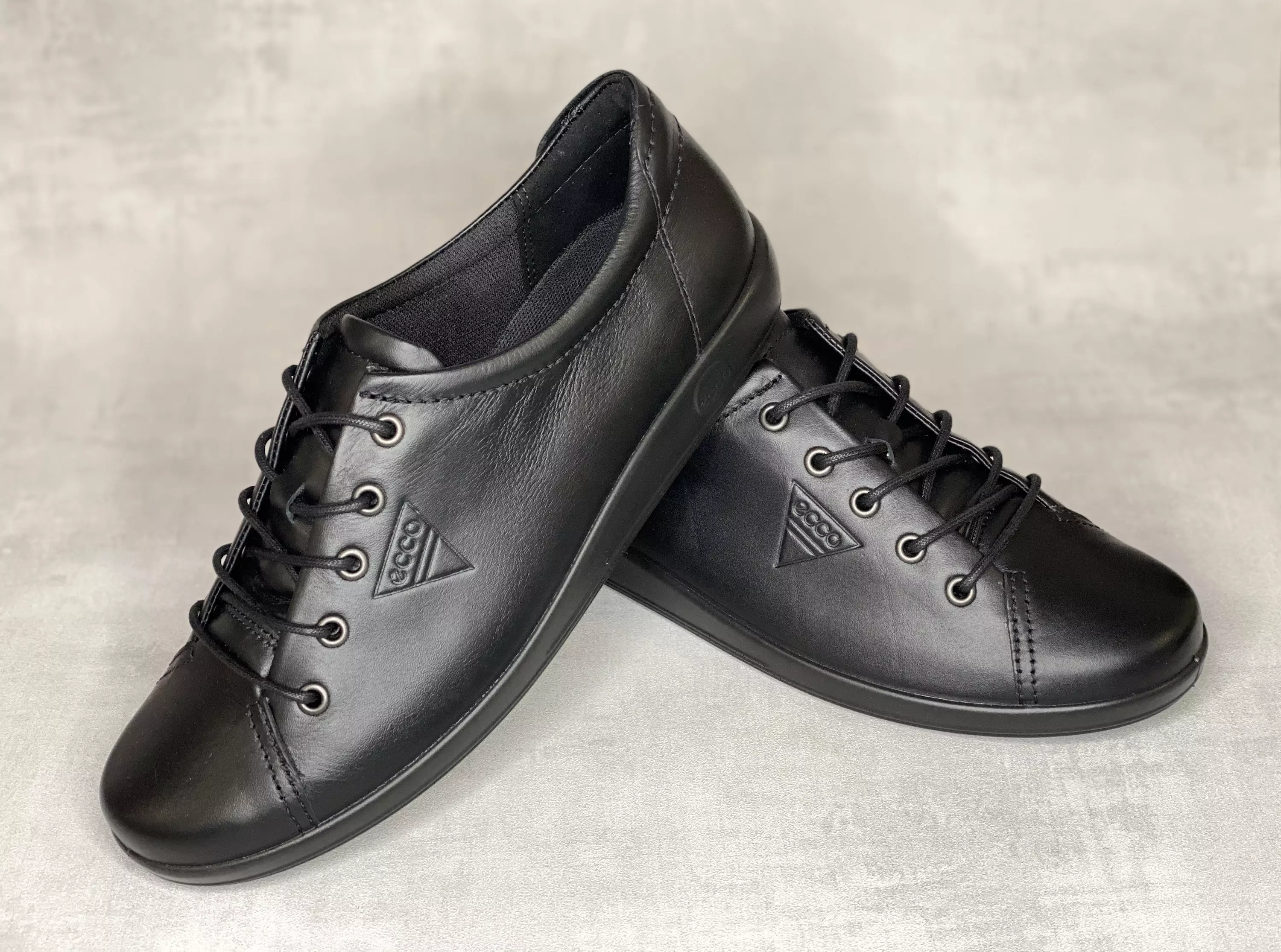 Mustat Ecco Soft 2.0 kävelykengät. Mustat nahkakengät mustalla pohjalla ja mustilla nauhoilla. Nauhojen avulla kengät on helppo säätää omaan jalkaan sopiviksi. Tyylikkäät ja hillityt Ecco kävelykengät ovat asiakaskuntamme kestosuosikki!