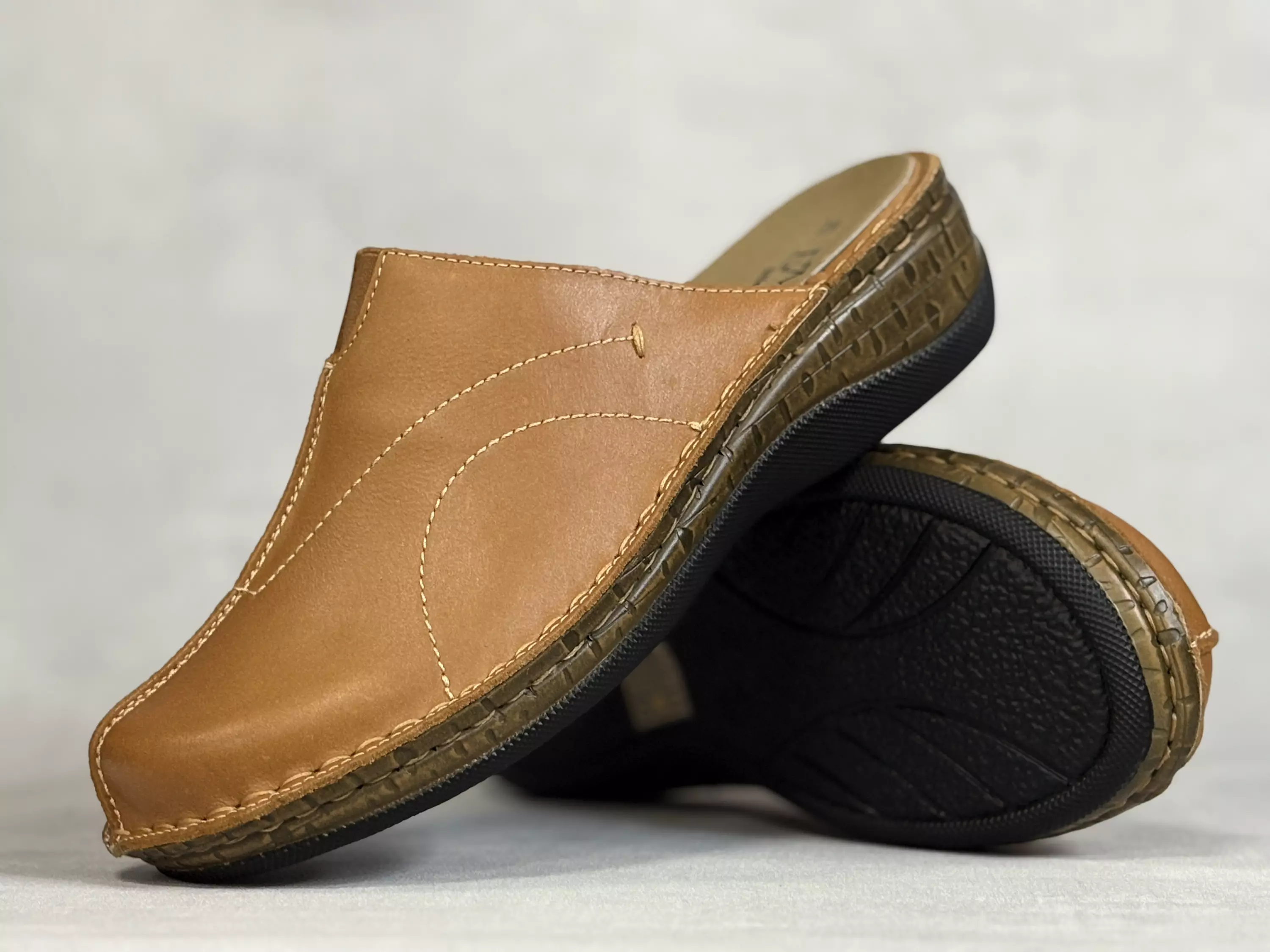 Konjakinruskeat Emma Naural Comfort pistokkaat. Nahkapintaiset pistokkaat, joissa keskellä edessä istuvuutta parantava venyke. Tekstiiliset vuorit. Irrotettavat pohjalliset ovat kevyesti muotoillut ja tarvittaessa sujautat kenkiin omia tarpeitasi parhaiten vastaavat pohjalliset. Lestimitoitus normaali G. Kannan korkeus noin 4,5cm ja pohjan korkeus päkiän alta noin 2cm.