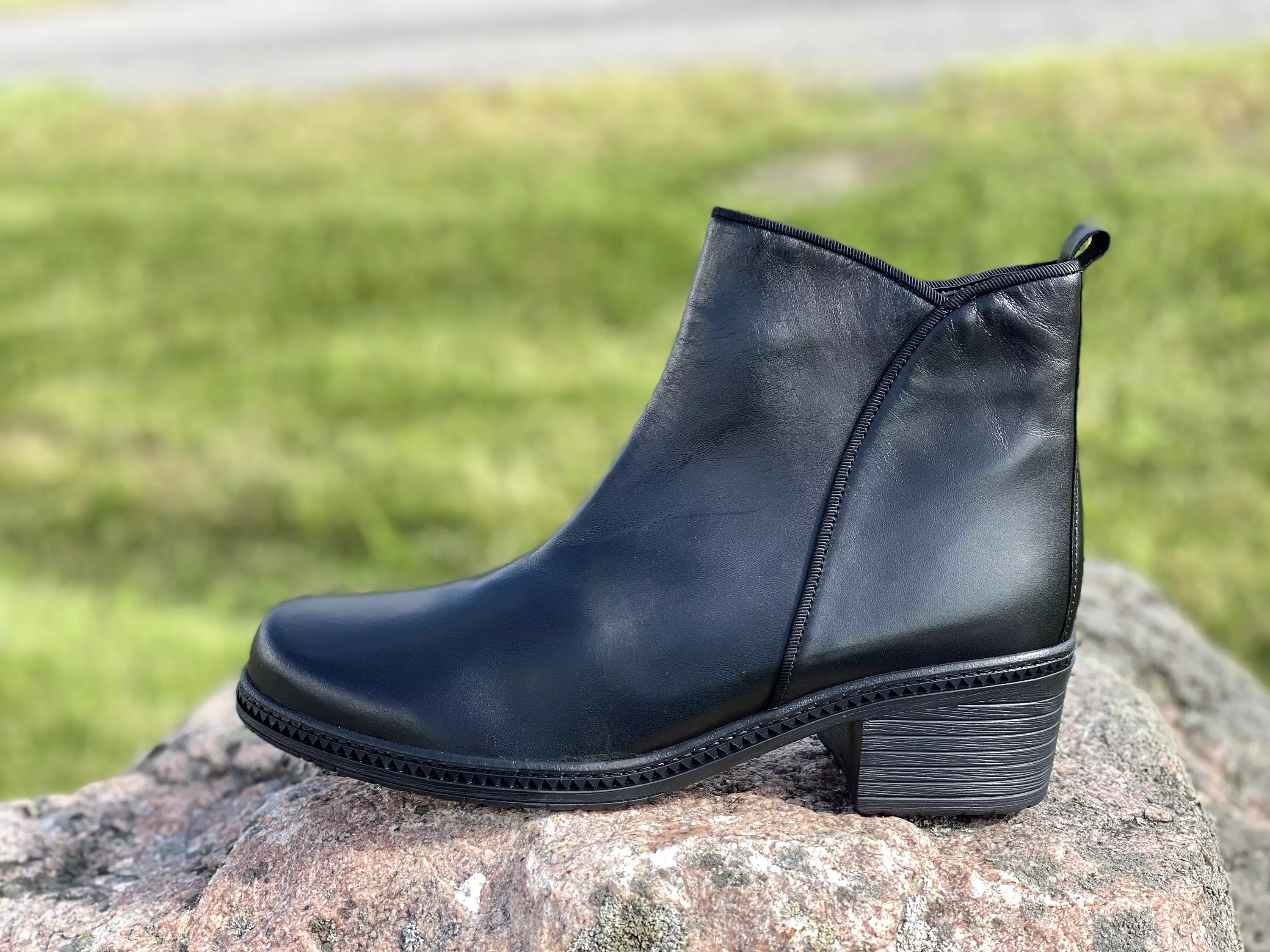 Mustat nahkaiset Gabor nilkkurit. Pelkistetyn tyylikkäät nilkkurit tekstiilisellä huopavuorella. Sisäsyrjällä pukemista helpottava vetoketju. Varren takaosaan on sijoitettu pieni vetolenkki. Huopapintaiset vaihdettavat pohjalliset, joiden tilalle sujautat tarvittaessa omia tarpeitasi parhaiten vastaavat pohjalliset. Maltillinen noin 4,5cm korkea korko.