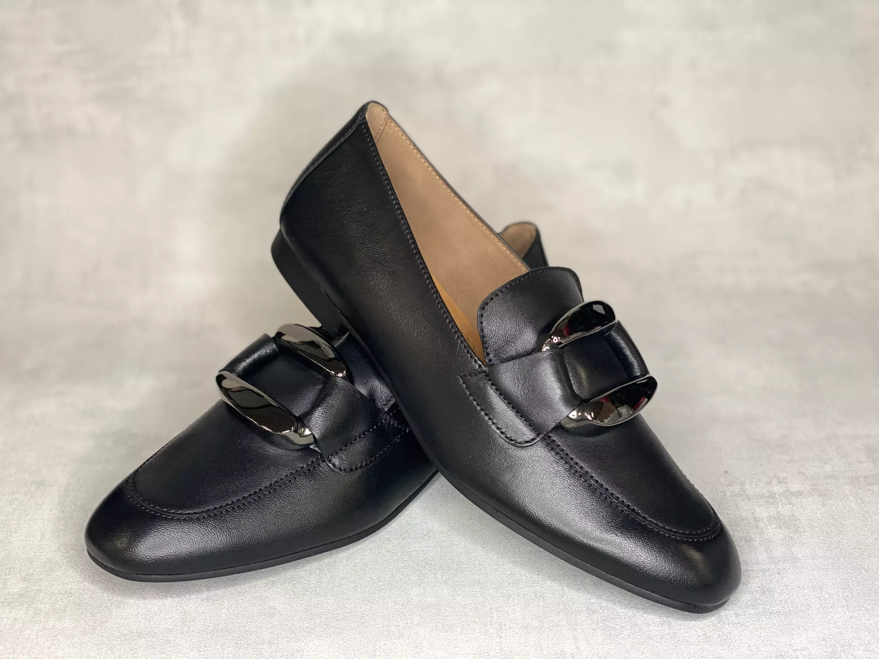 Mustat Gabor loaferit näyttävällä metallikoristeella