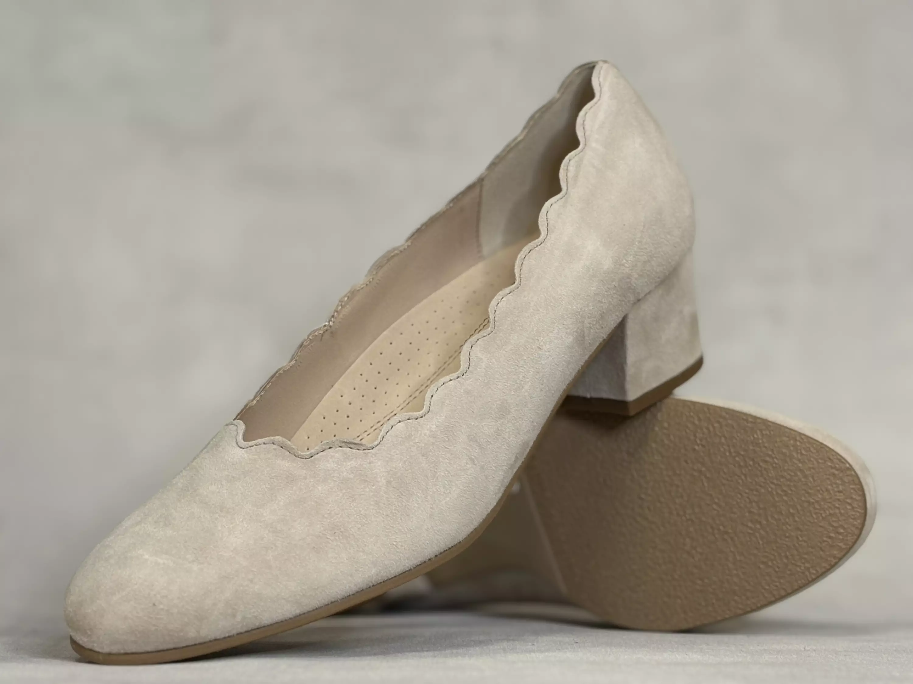 Vaalean beiget Gabor avokkaat. Pehmeästä nupukkinahasta valmistetut klassiset avokkaat. Sievä piparireunainen kengänsuu. Nahkainen vuori. Normaali (G) lestimitoitus. Kannan korkeus noin 4,5cm ja pohjan korkeus päkiän alta noin 0,5cm.