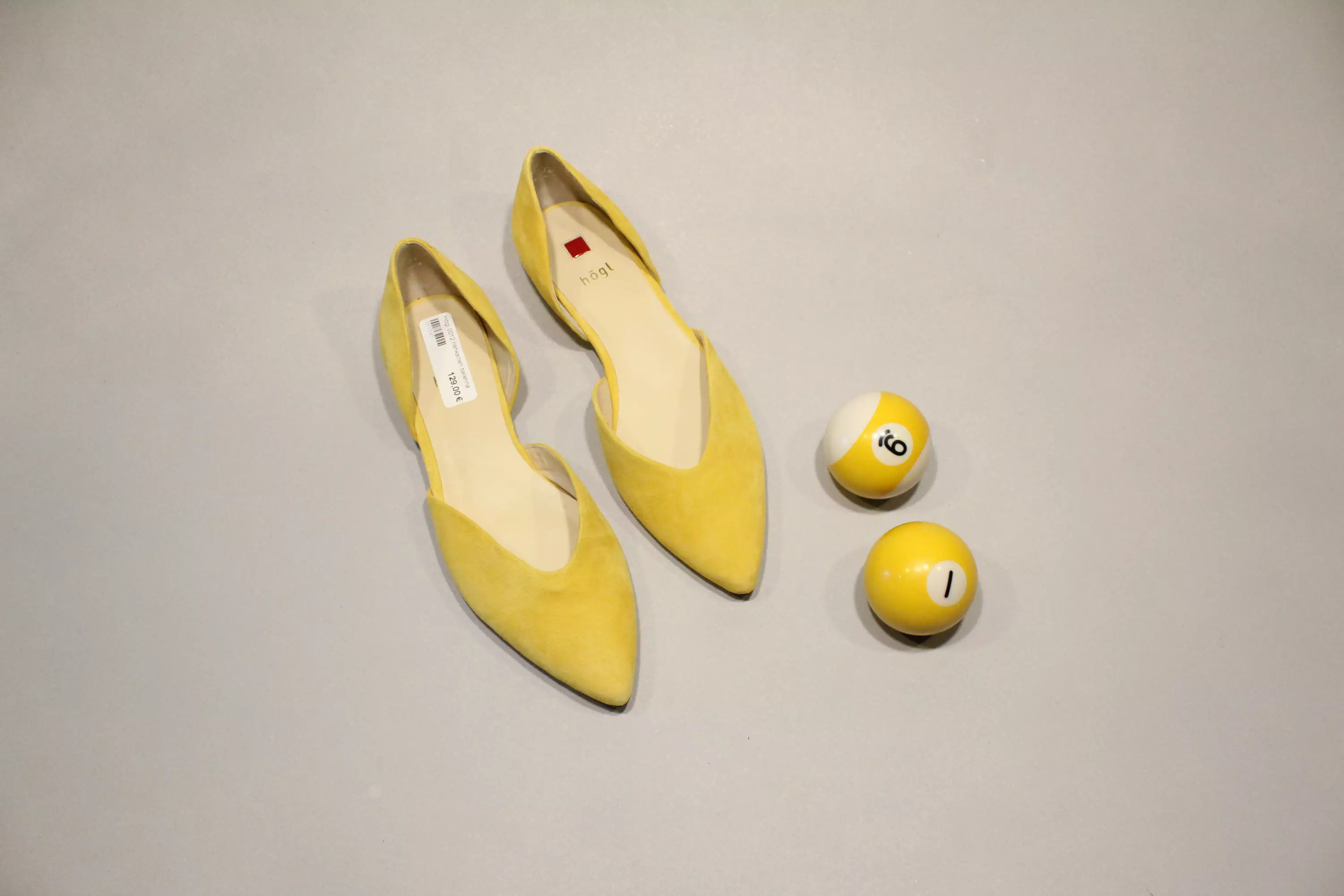 Keltainen mokkanahkainen ballerina Höglin mallistosta. Korkoa näistä kaunokaisista löytyy 1cm verran.