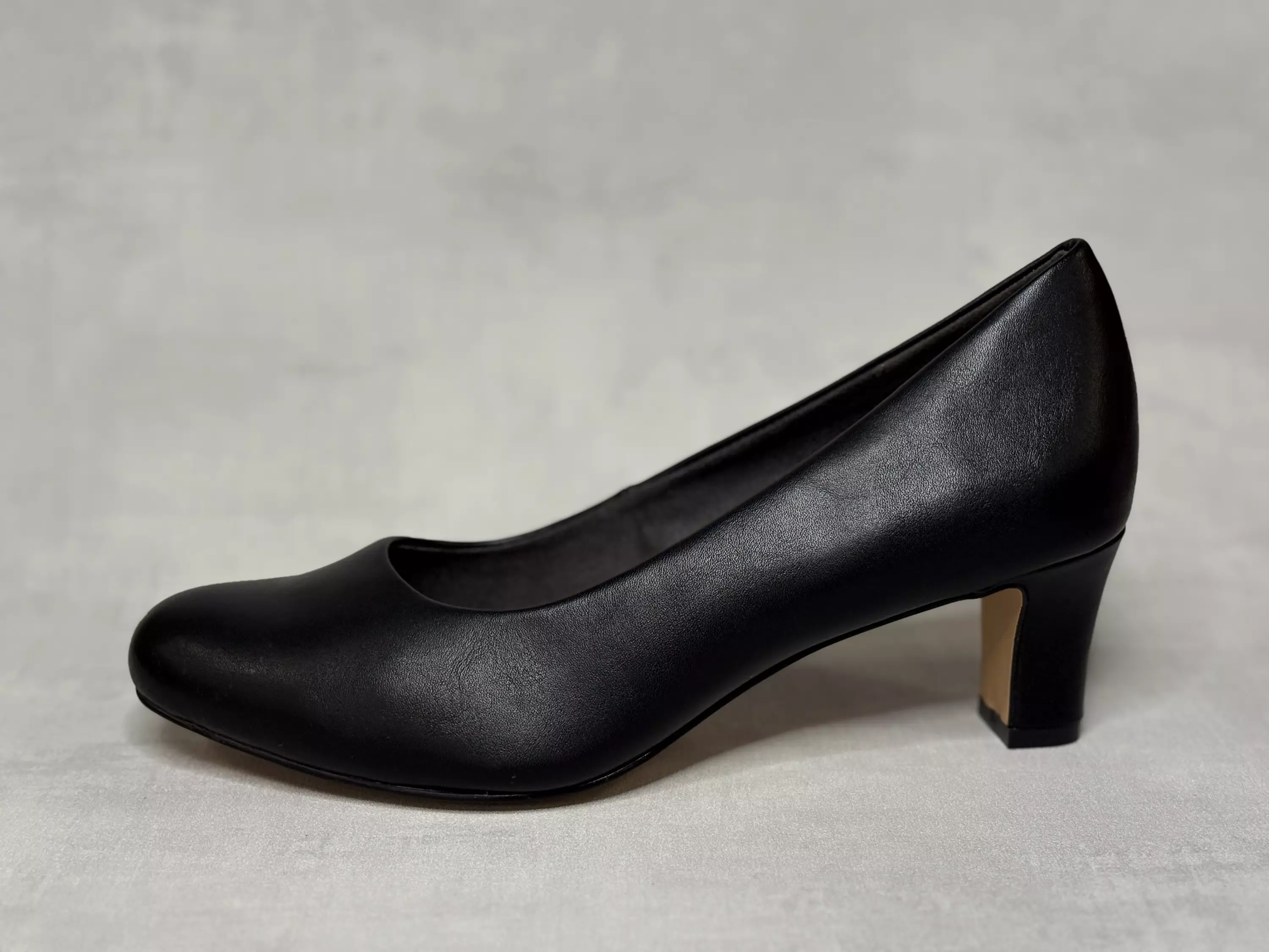 Mustat Jana avokkaat. H-lestiset korkokengät. Synteettinen nahkaa imitoiva pinta. Kannan korkeus noin 5,5cm. Kapeneva kärki.