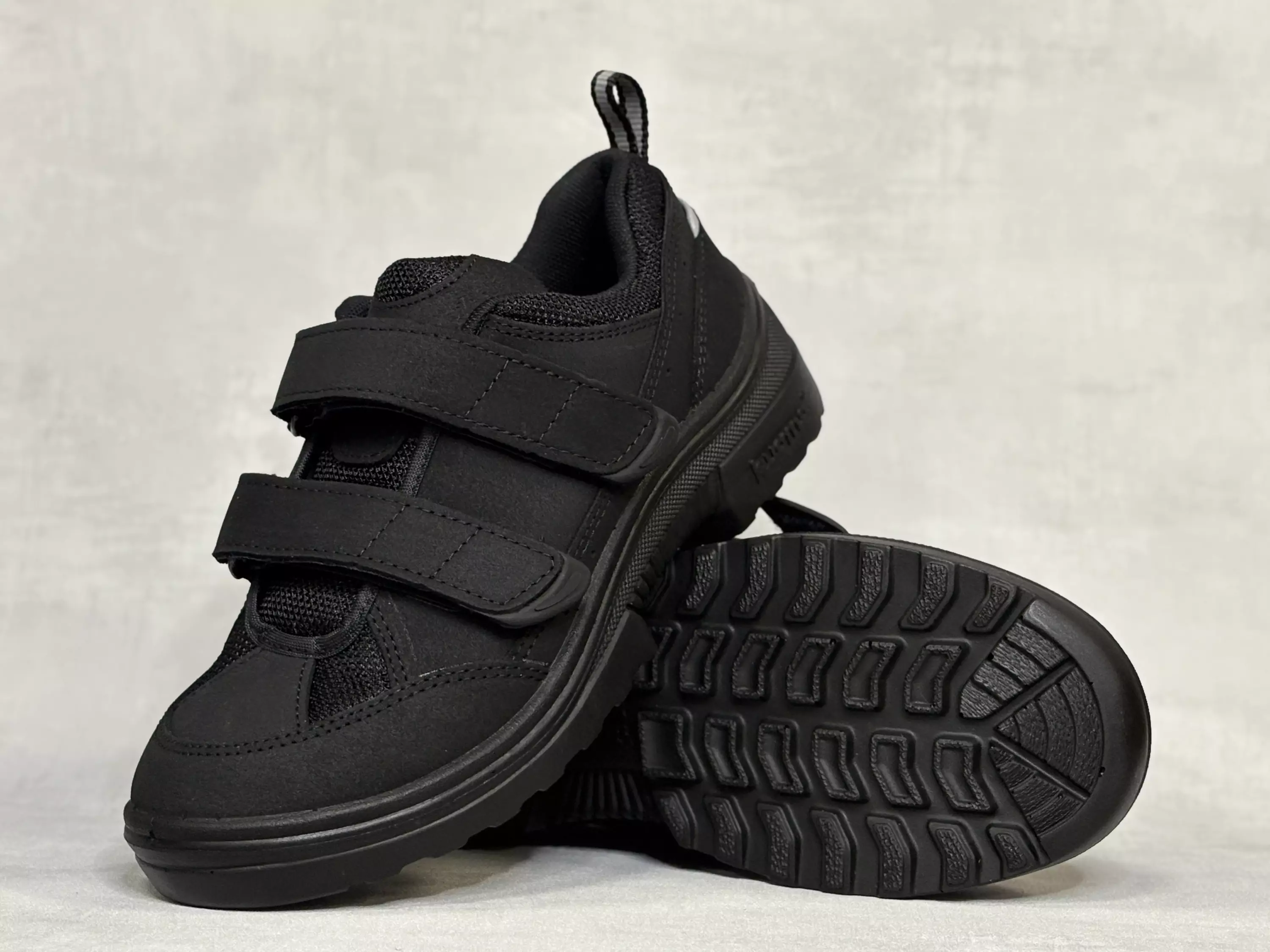 Mustat Kuoma Tarra Sport kävelykengät laajalla kokoskaalalla. Kahdella sääädettävällä tarraremmillä varustetut Kuoma Tarra Sport lenkkarit ovat helposti puettavat, mukavat jalassa, mutta myös kestävä ja loistava valinta keväästä syksyyn. Kenkien päällinen on vettähylkivää haljasnupukkia ja kengän vahvikkeet puolestaan PU-pinnoitettua haljasta. Kantakappaleessa on pieni heijastinraita.