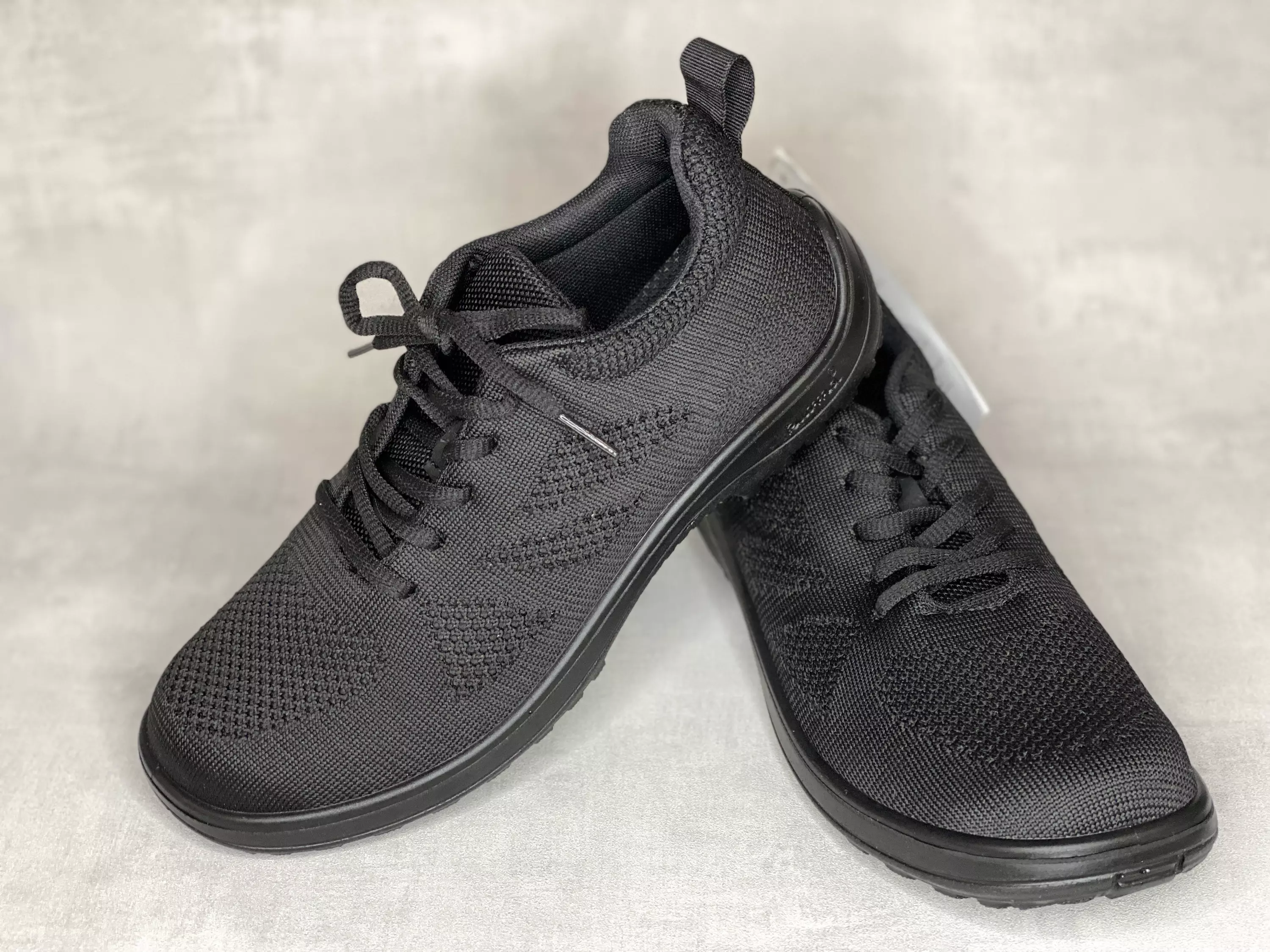 Mustat Kuoma Vire kesäjalkineet ovat erittäin kevyet ja huippumukavat jalkineet nauhakiinnityksellä. Mustaa mustalla toteutettu kenkä, joka on musta pintaa ja pohjaa myöten. Päällinen on neulosta, joka on sekä pehmeää että erittäin hengittävää. Sisätilavuutta voidaan muuttaa erillisellä välipohjalla. Tuote on vegaaninen eli ei sisällä eläinperäisiä materiaaleja.